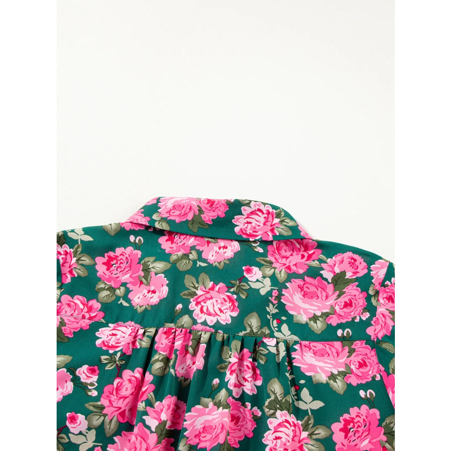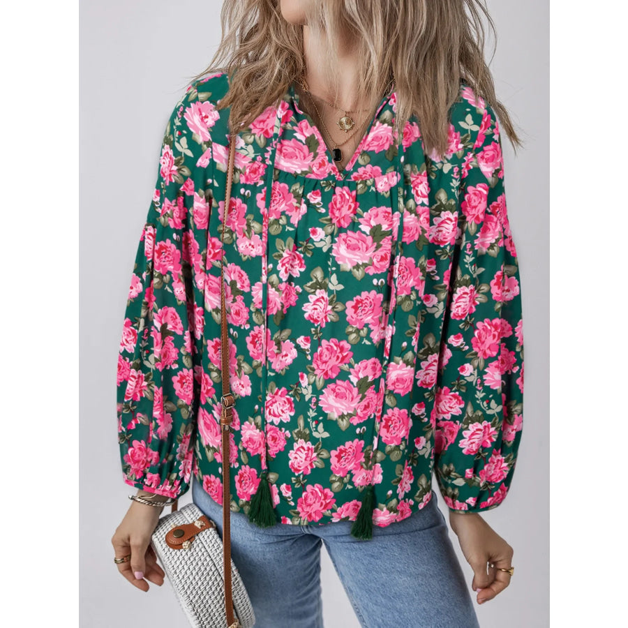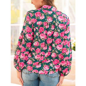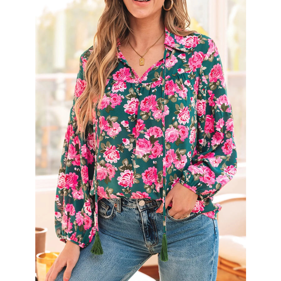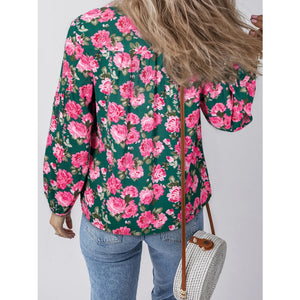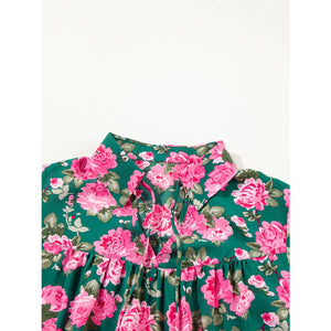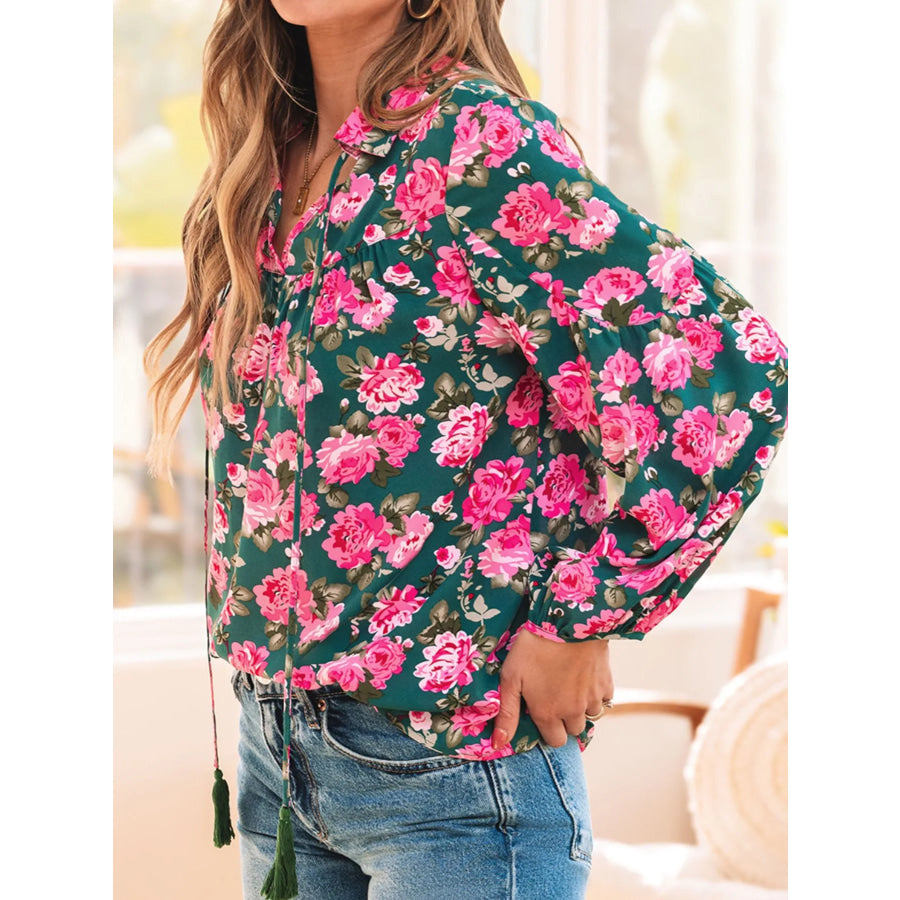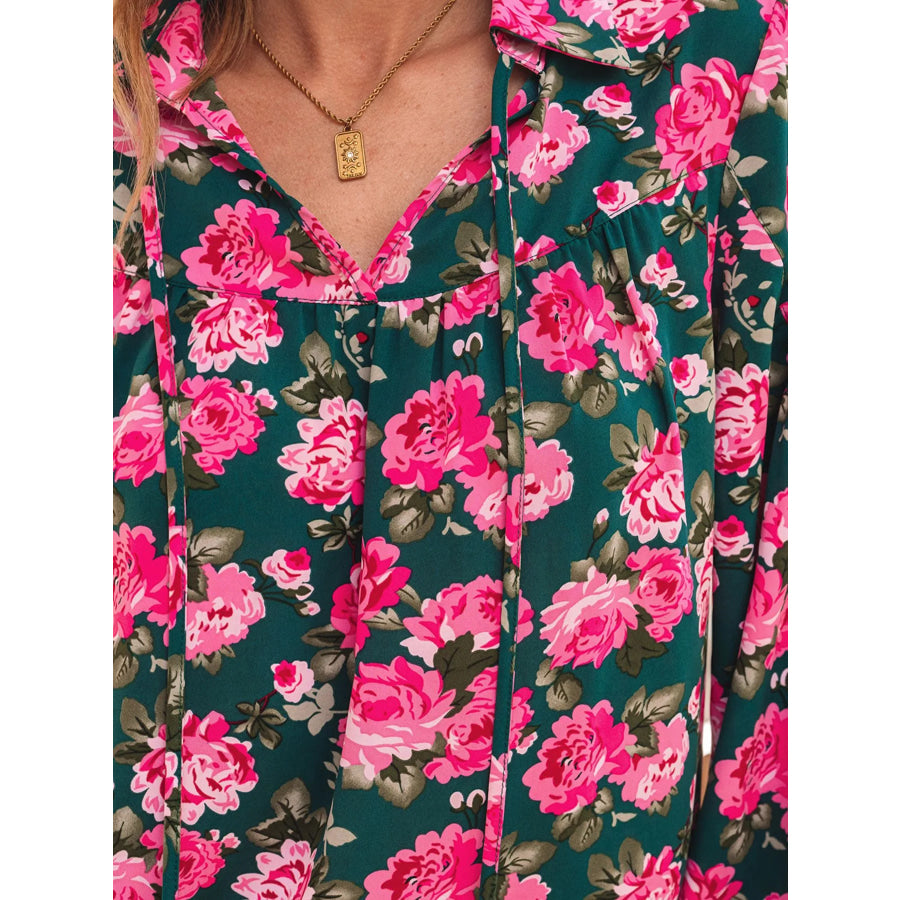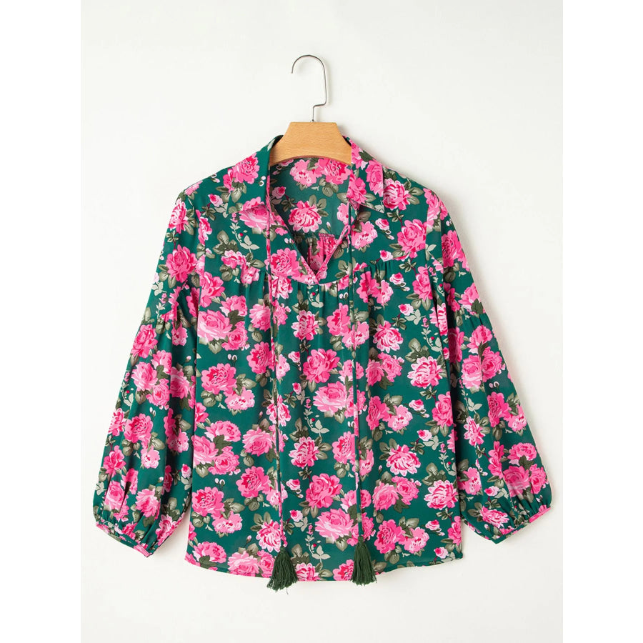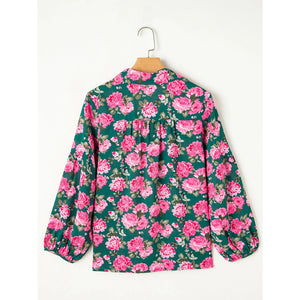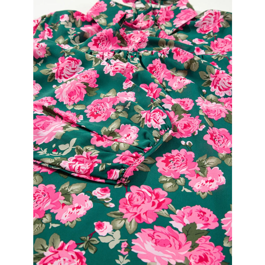 Floral Printed Tied Collar Puff Sleeve Blouse