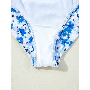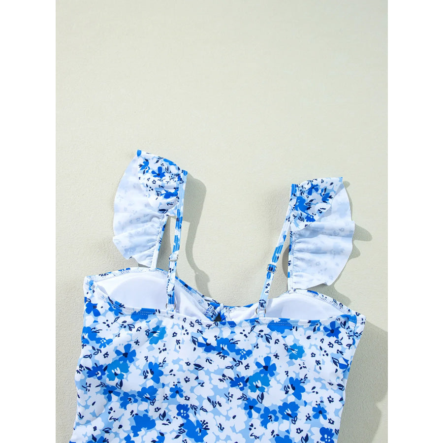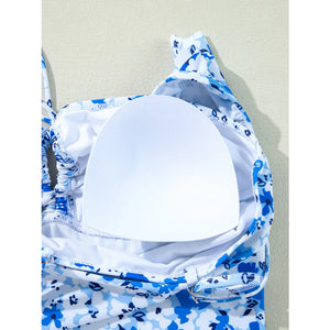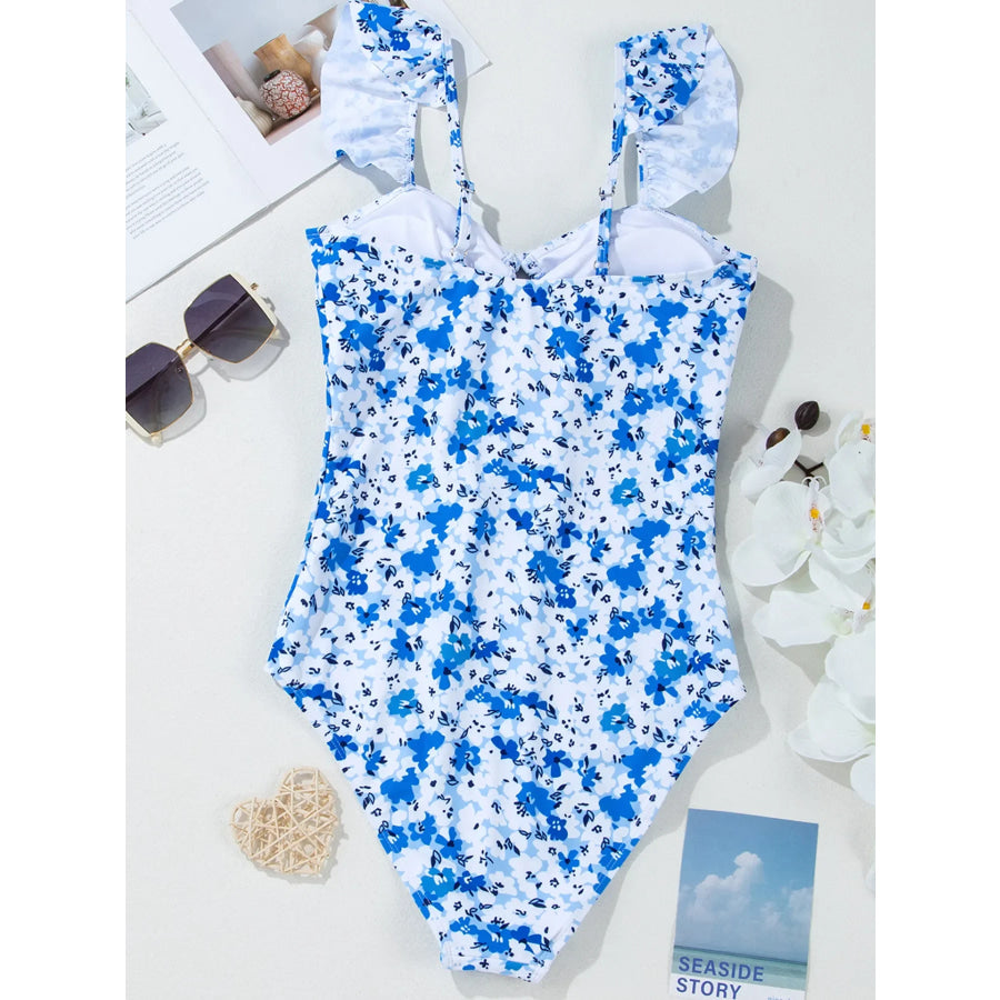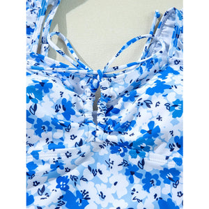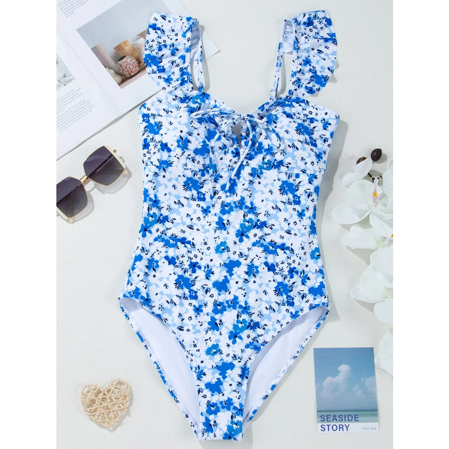 Floral Ruffled Strap Lace-up Hollow Out One Piece Swimsuit