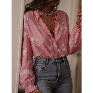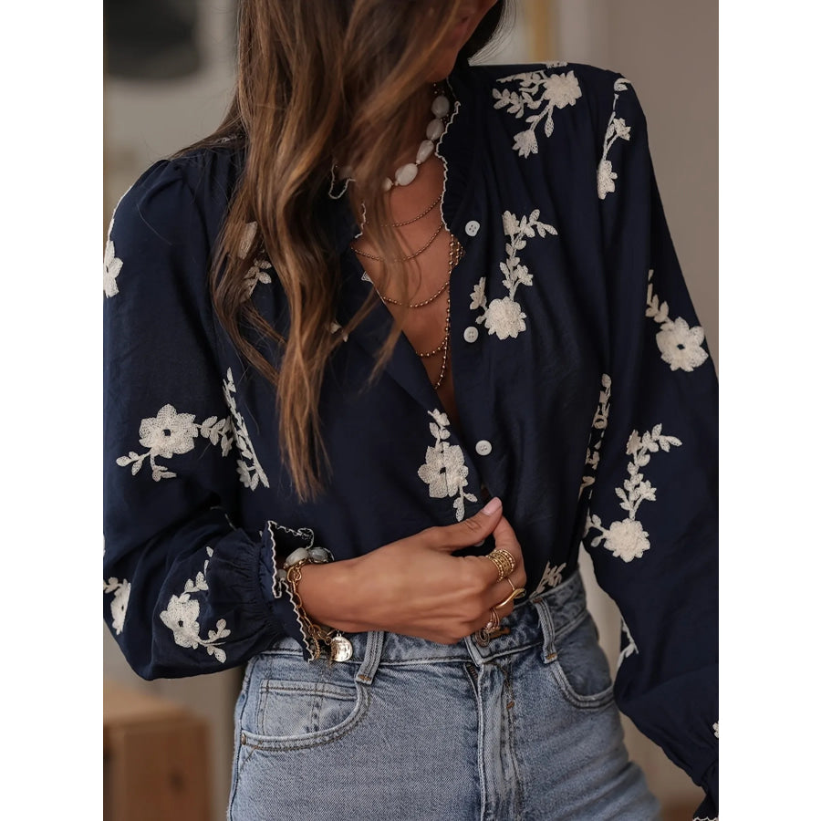 Flower Button Up Long Sleeve Shirt