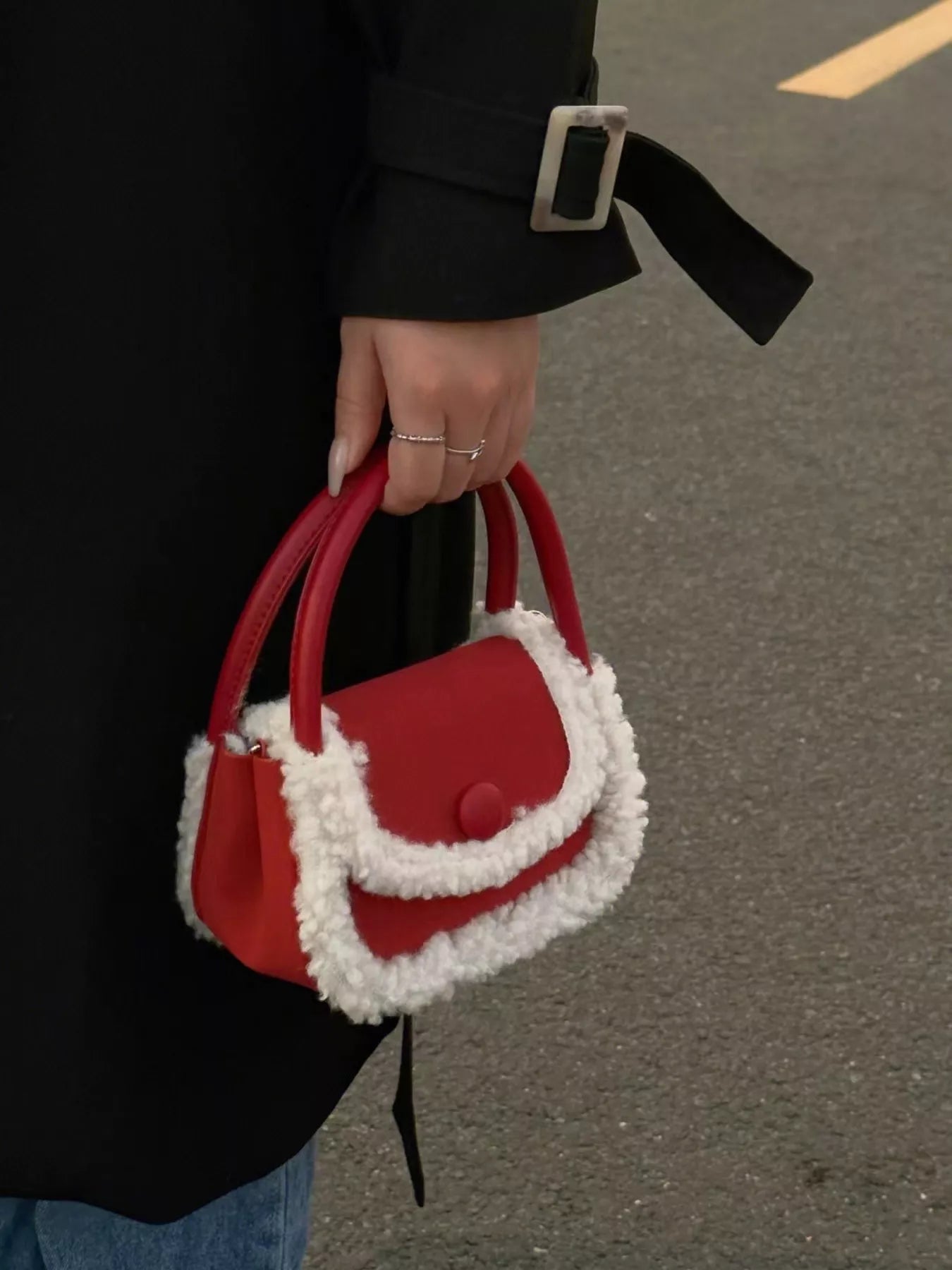 Fluffy Trim Mini Crossbody Bag
