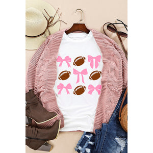 Football & Bow Round Neck Short Sleeve T-Shirt