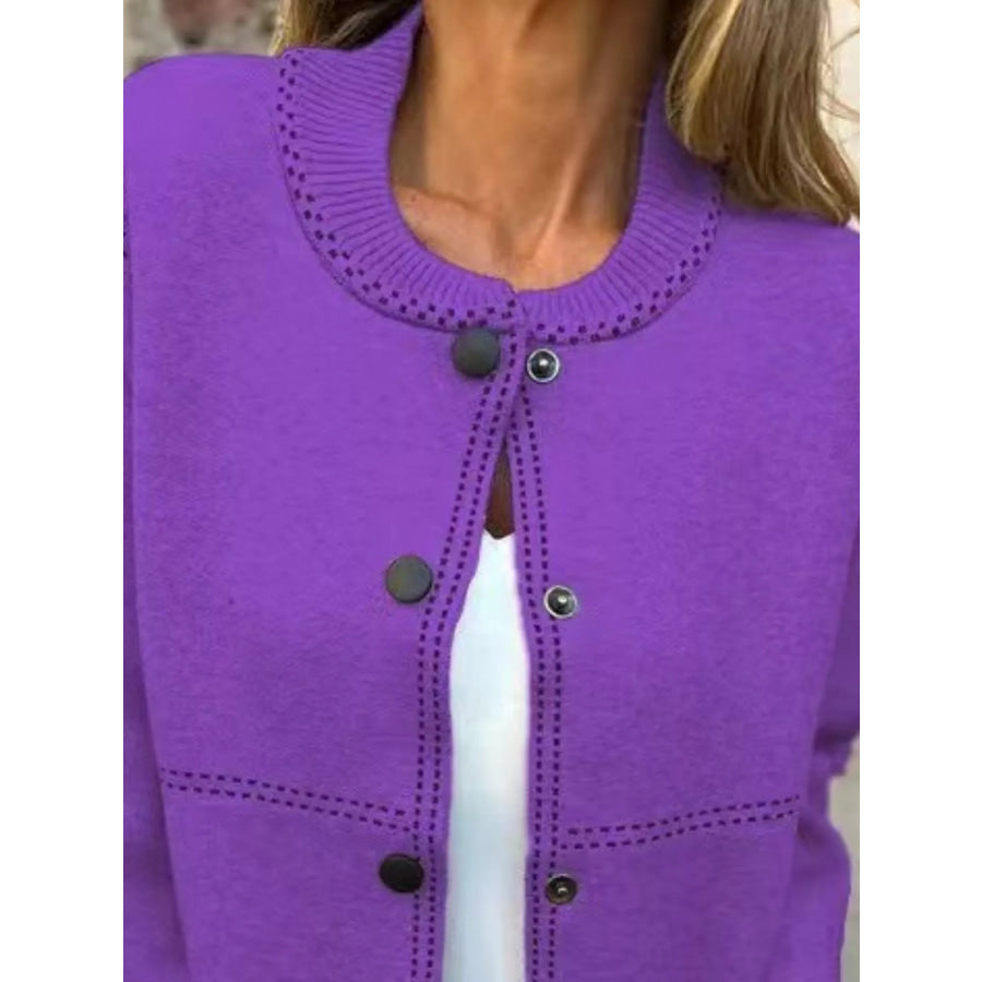Full Size Button Up Long Sleeve Cardigan Plus Size