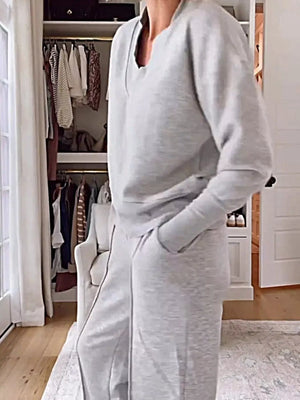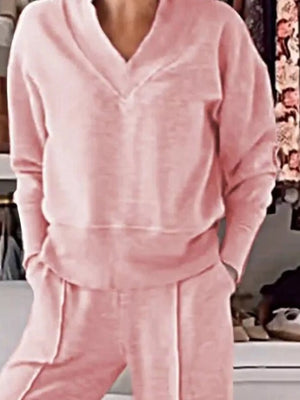 Full Size Cozy V-Neck Top and Pants Set Plus Size
