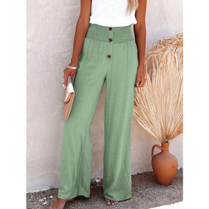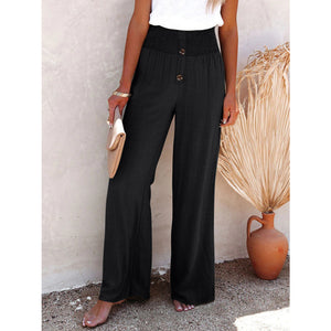 Full Size Decorative Button High Waist Pants