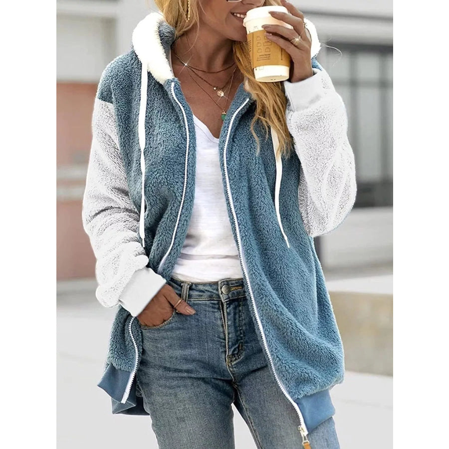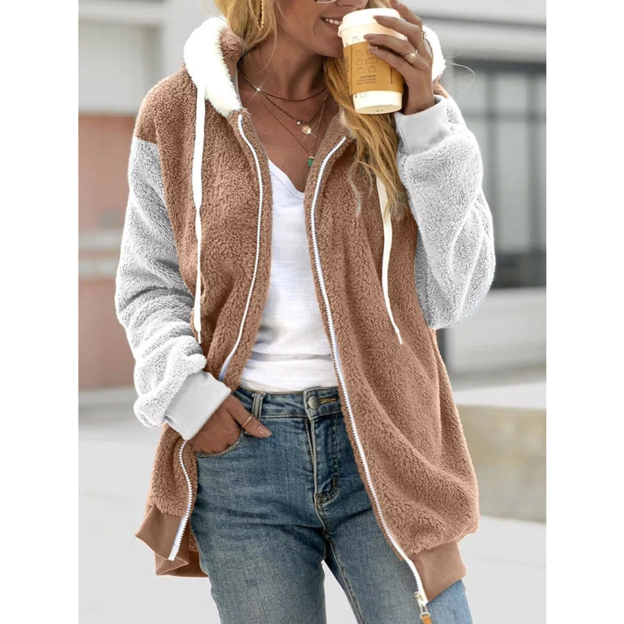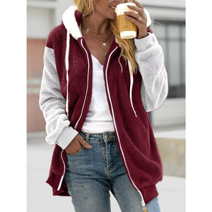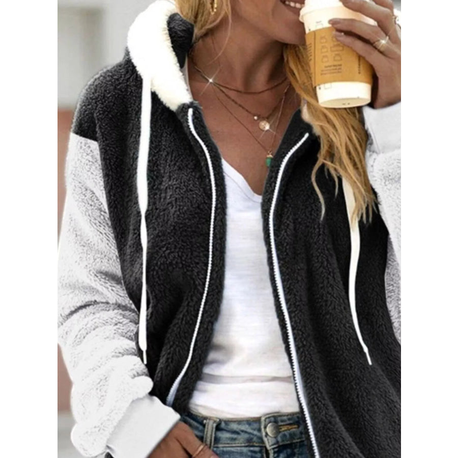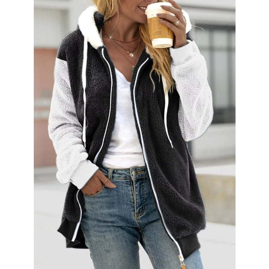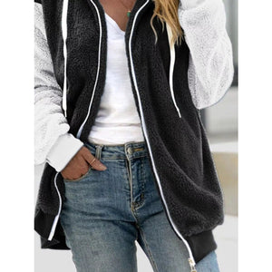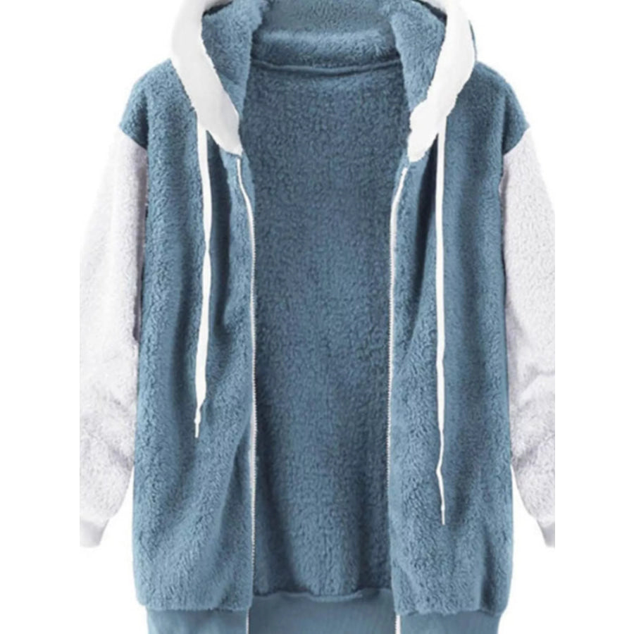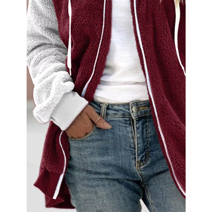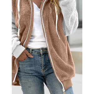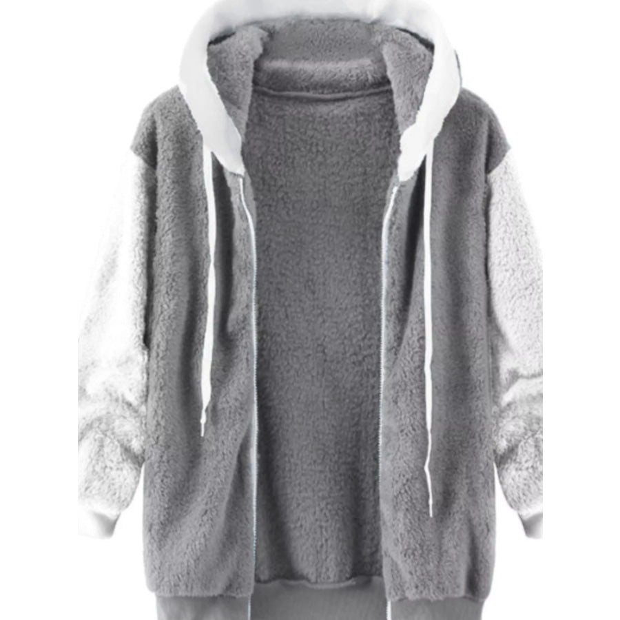 Full Size Fleece Zip-Up Hooded Outerwear Plus Size