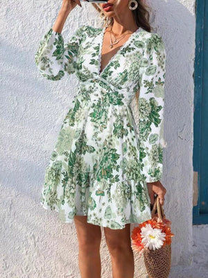 Full Size Floral V-Neck Long Sleeve Dress Plus Size