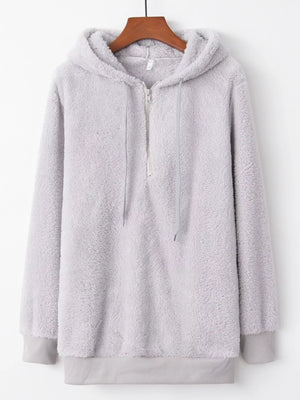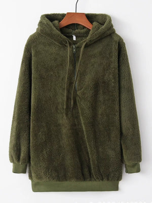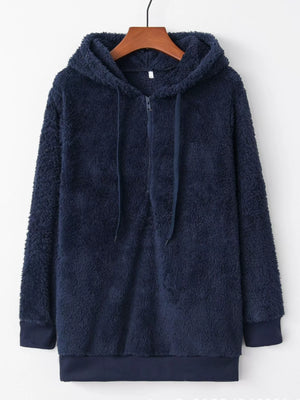 Full Size Half Zip Drawstring Fleece Hoodie Plus Size