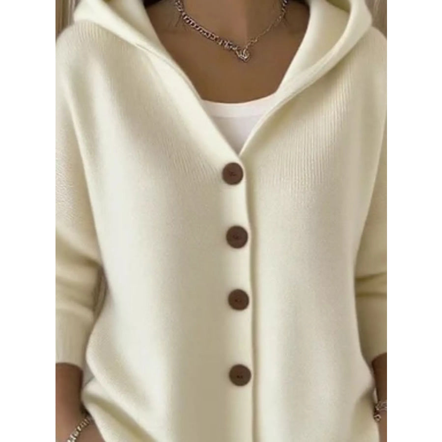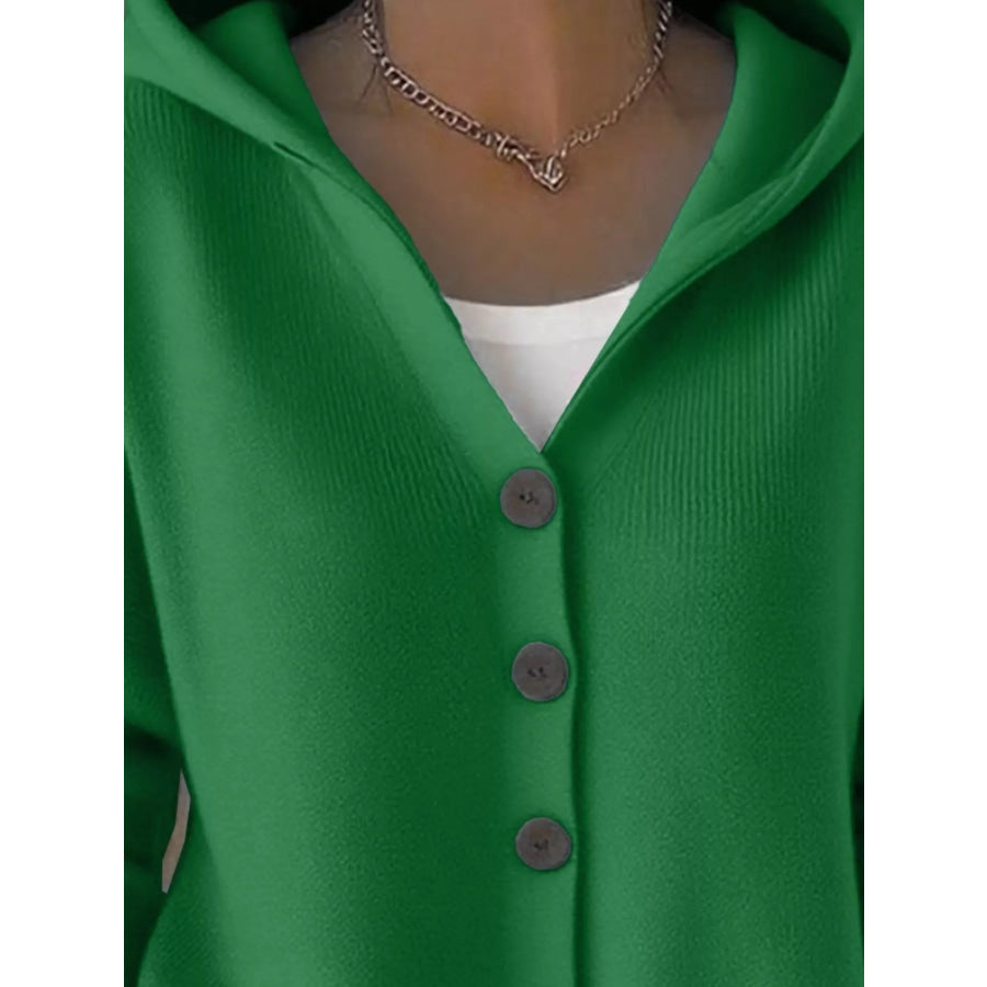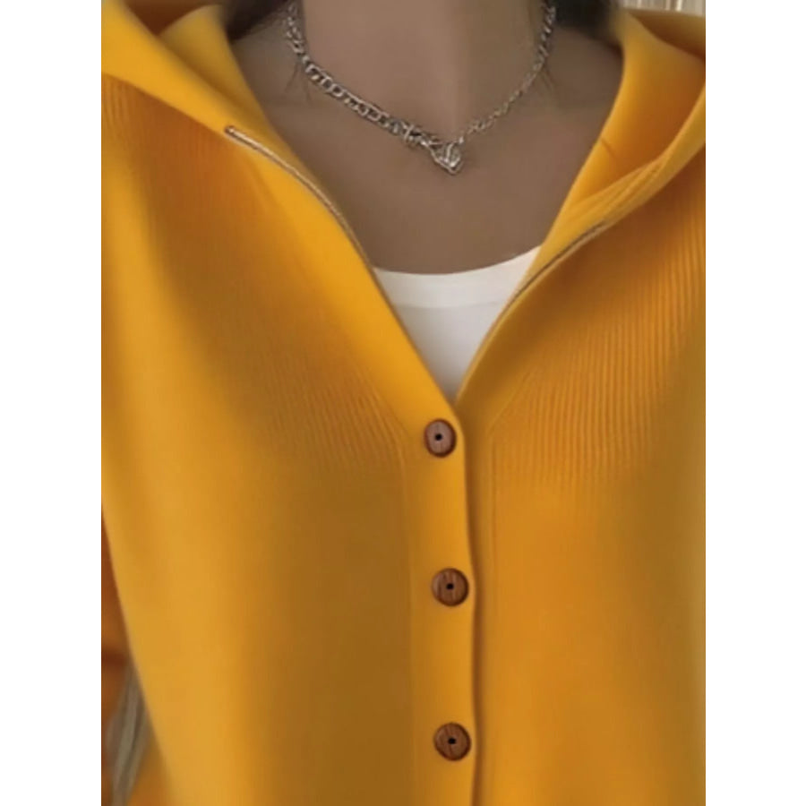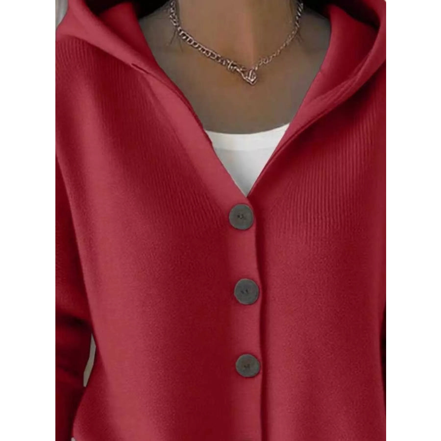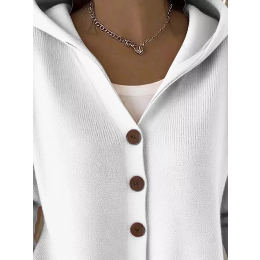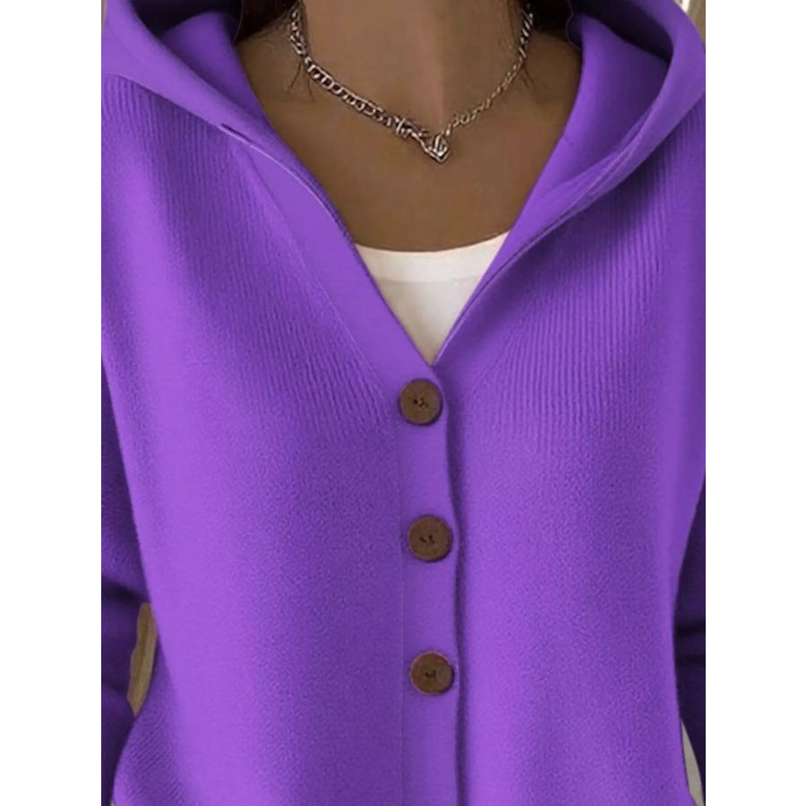 Full Size Hooded Button-Front Soft Knit Cardigan Plus Size
