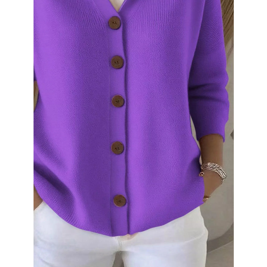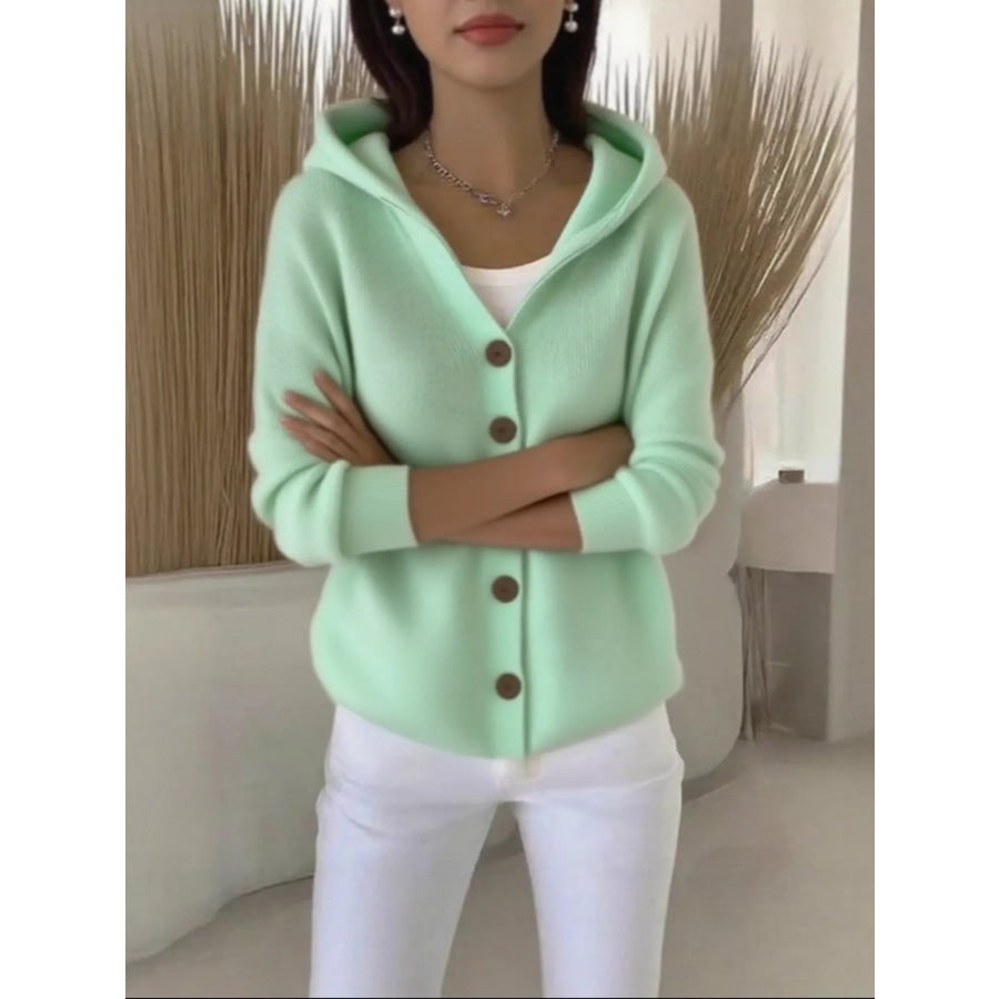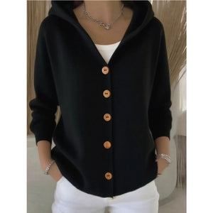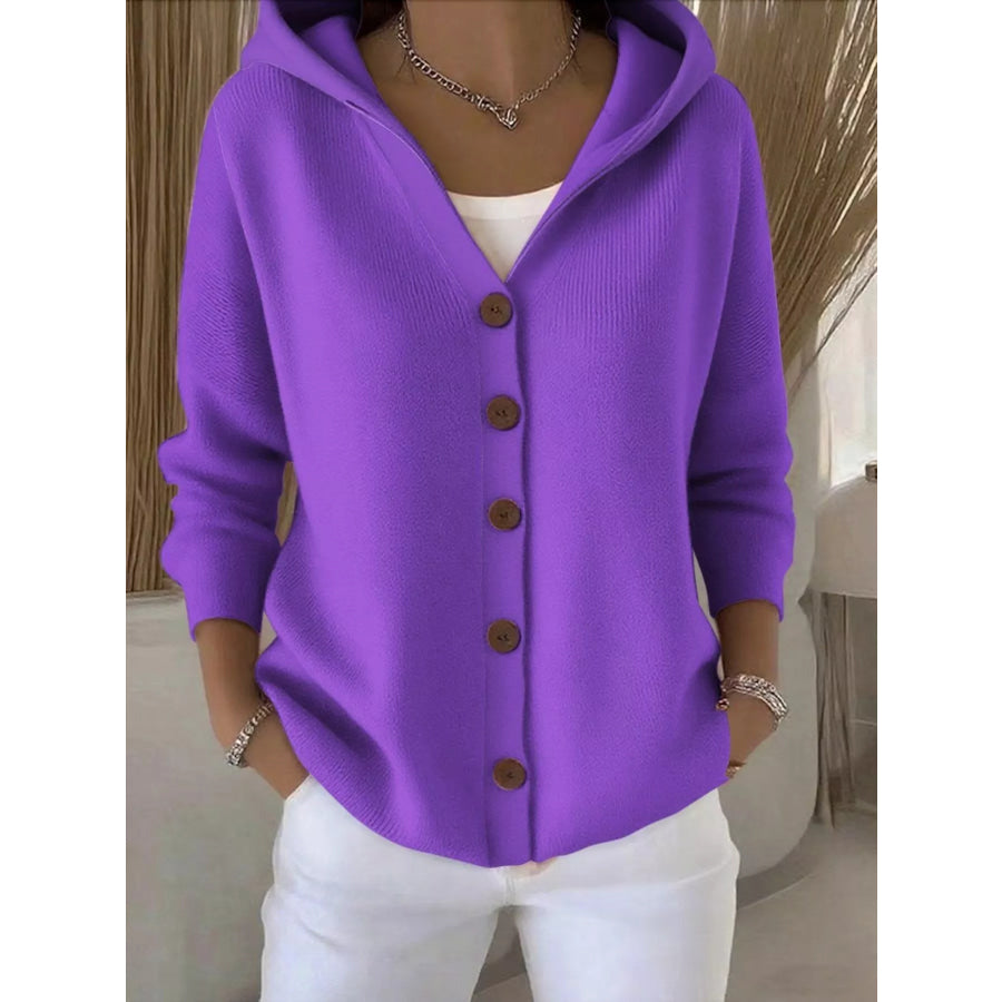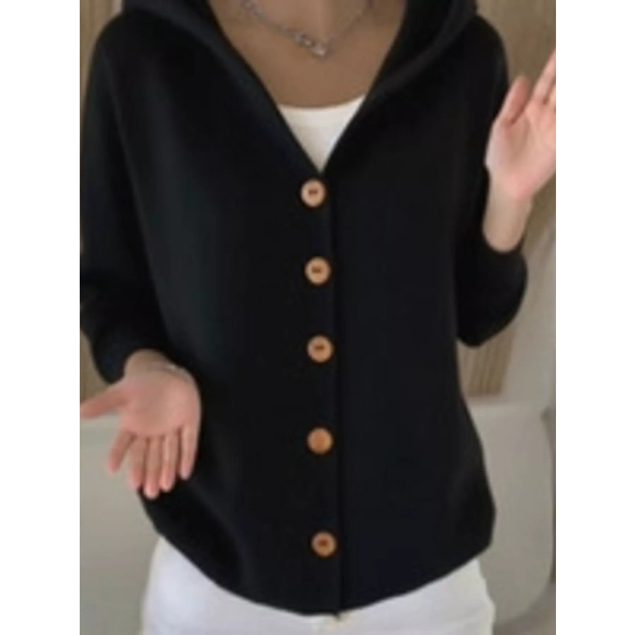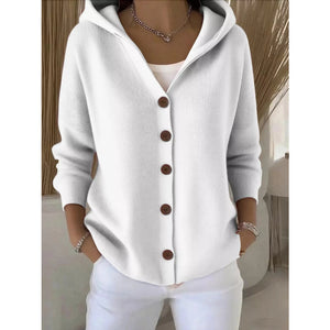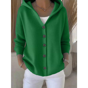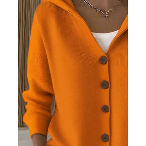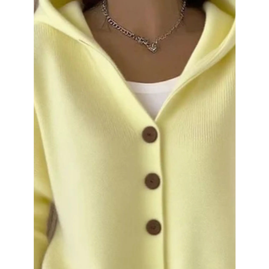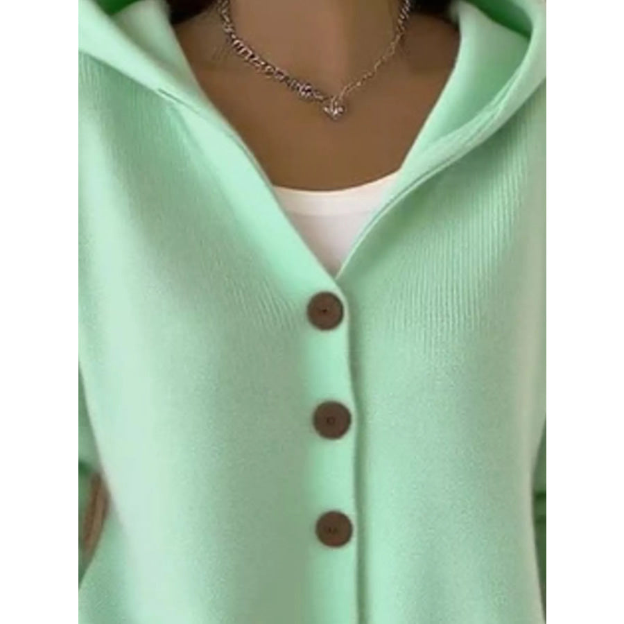 Full Size Hooded Button-Front Soft Knit Cardigan Plus Size