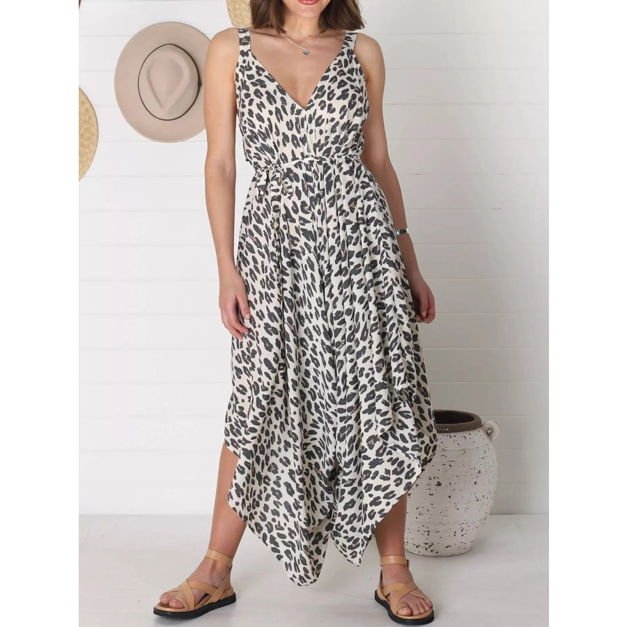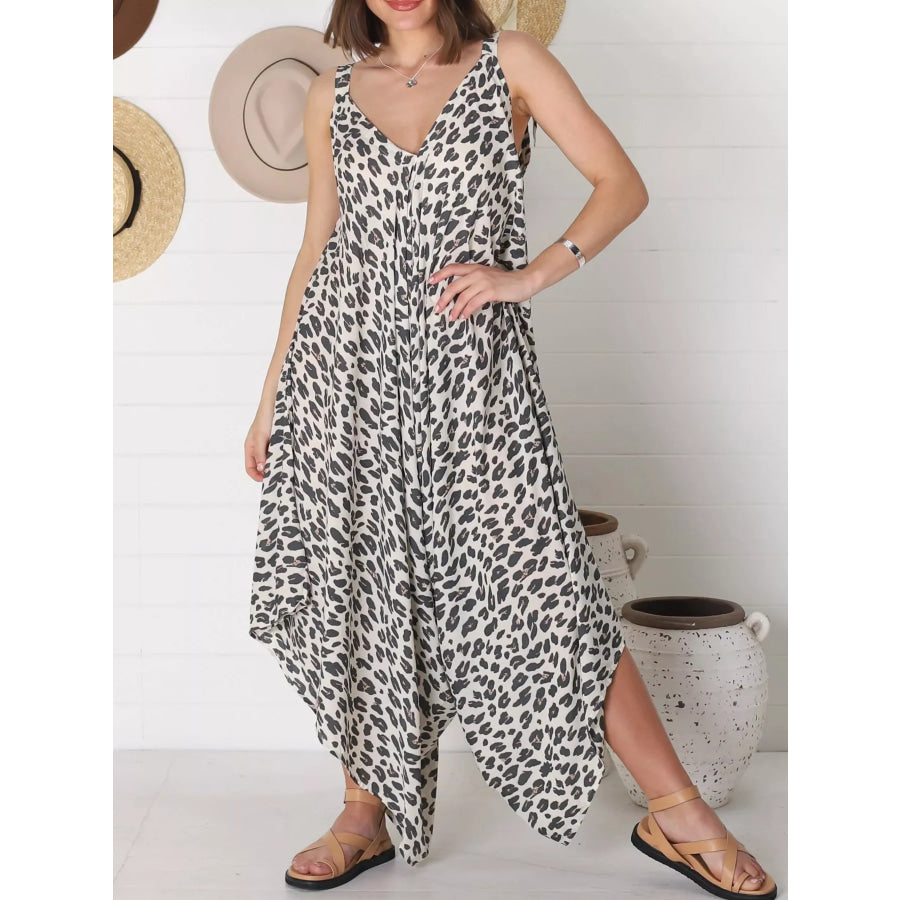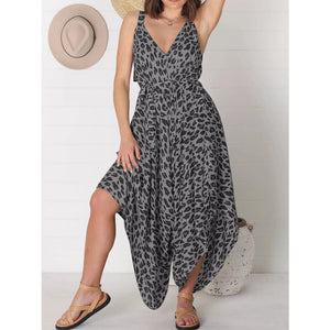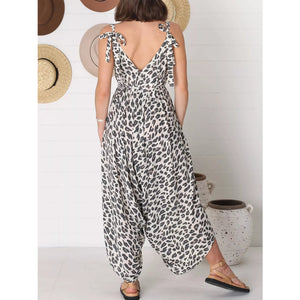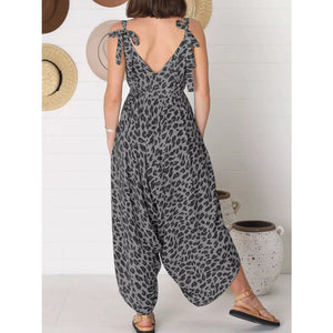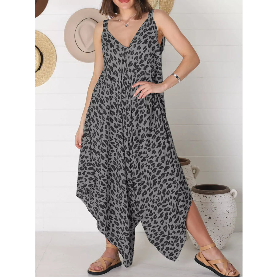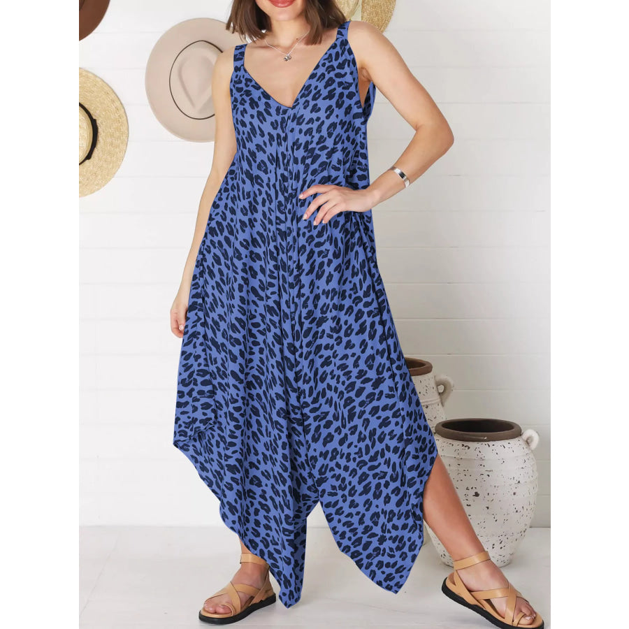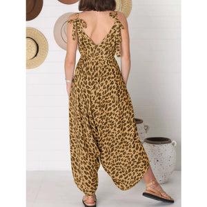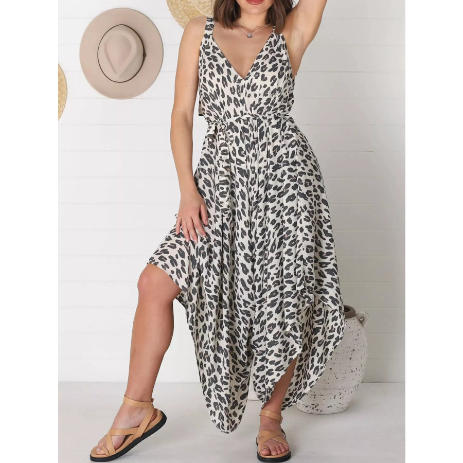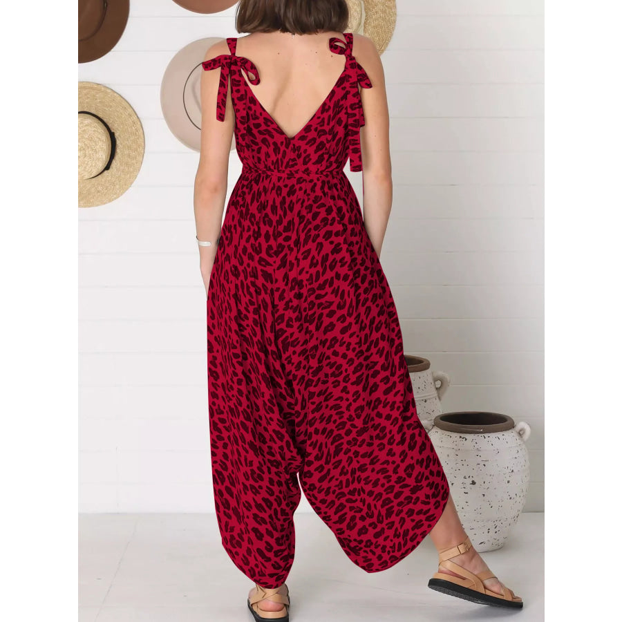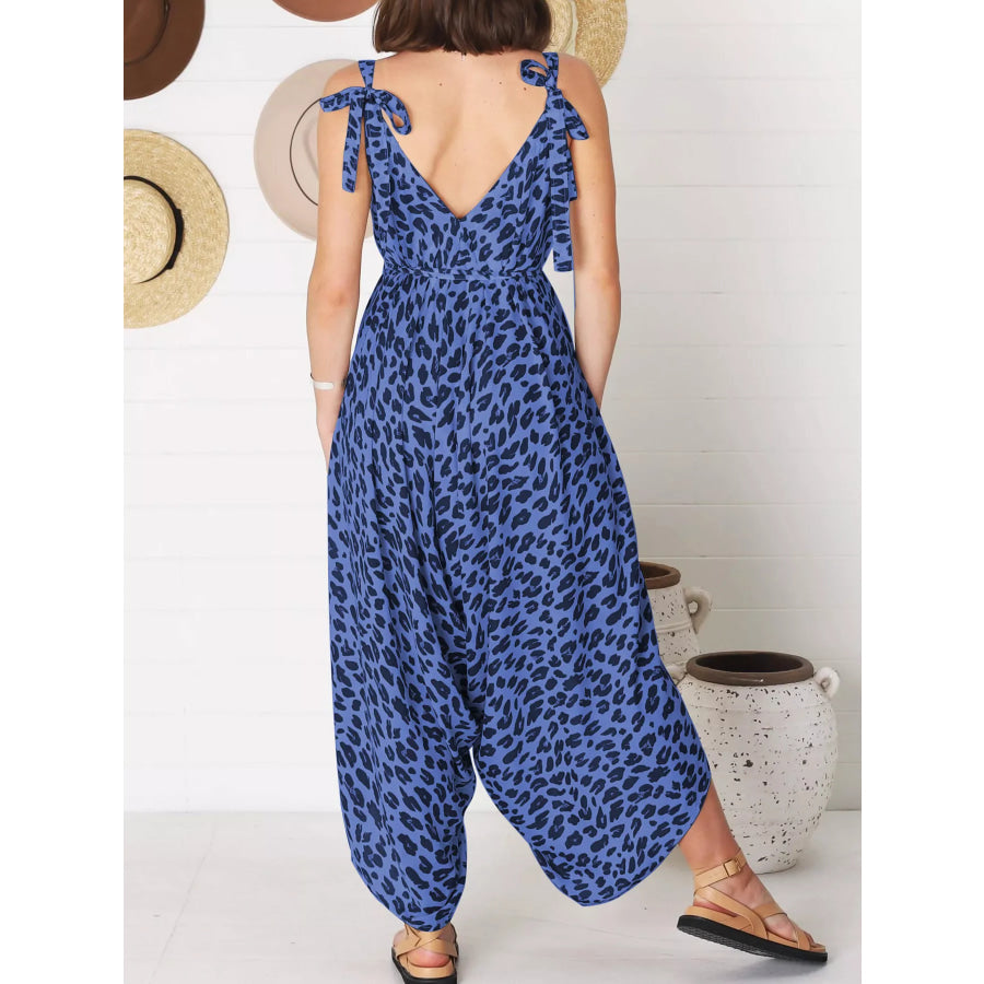 Full Size Leopard Print V-Neck Wide Leg Jumpsuit Plus Size