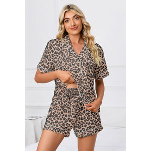 Full Size Leopard Short Sleeve Top and Shorts Lounge Set Plus Size