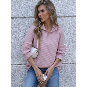 Full Size Ribbed Quarter Zip Long Sleeve Sweatshirt