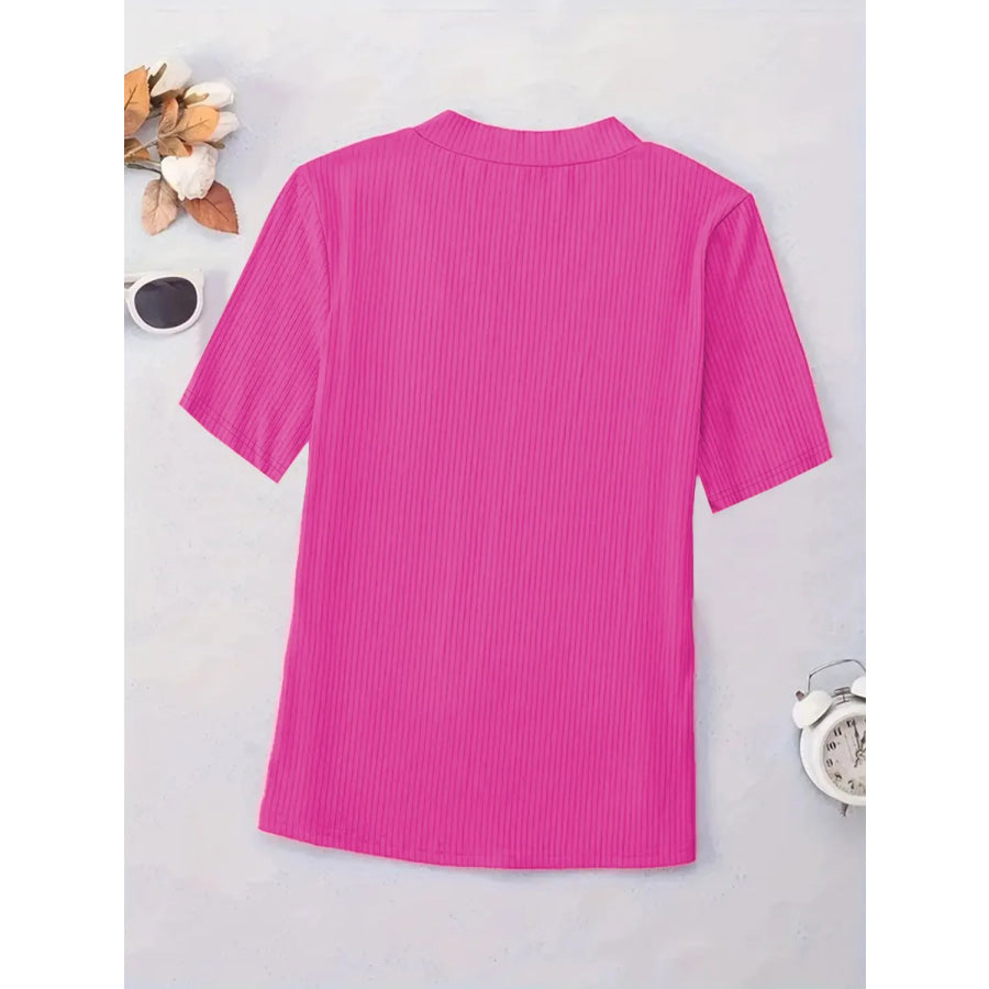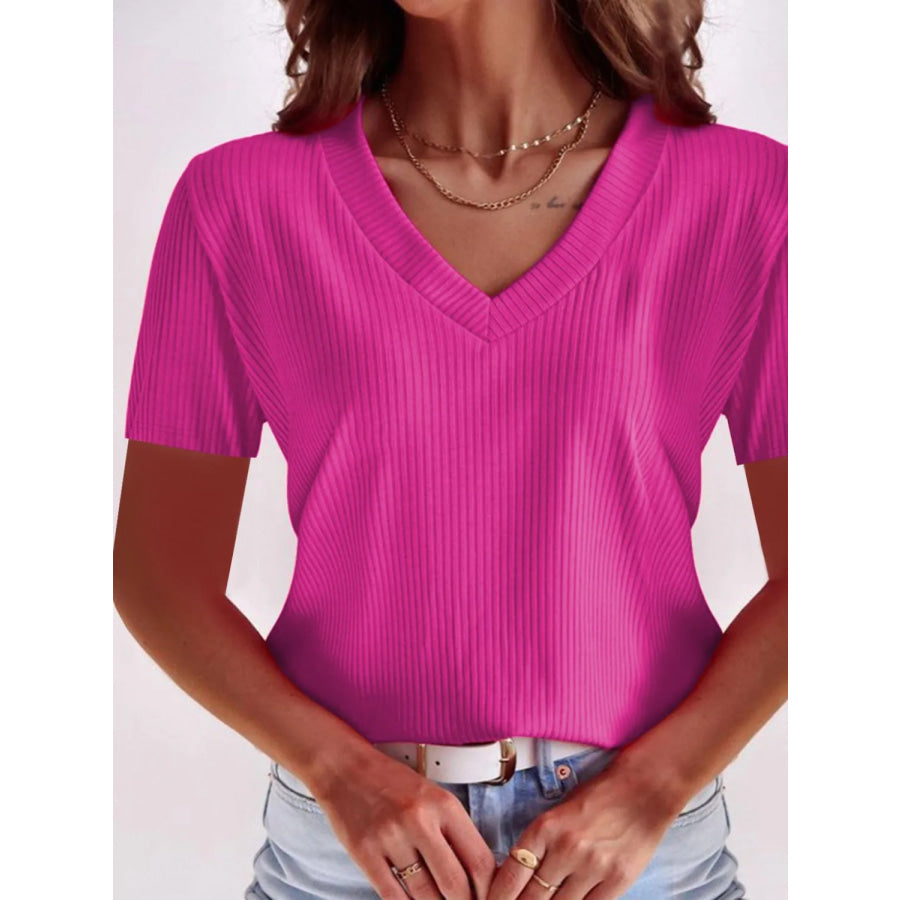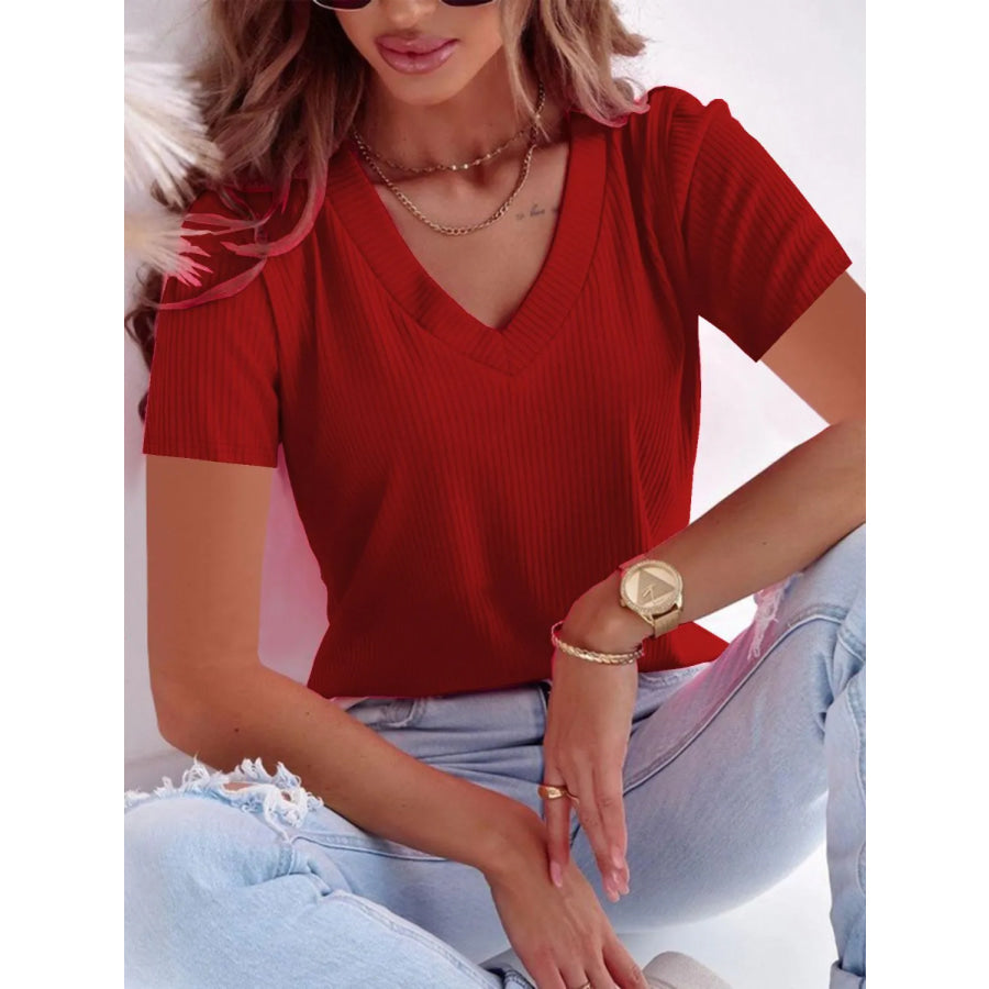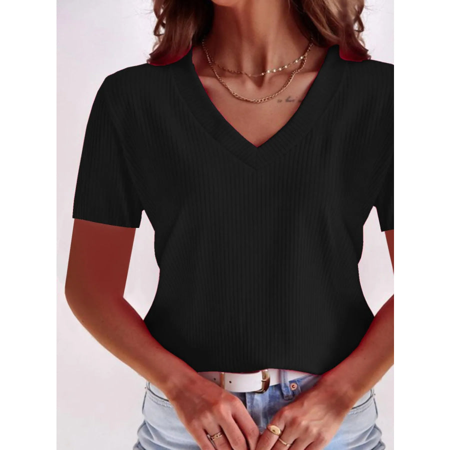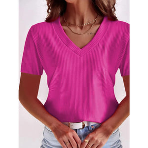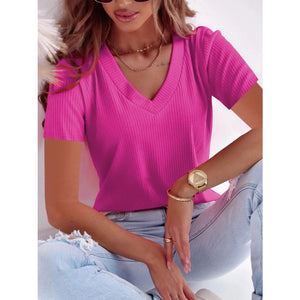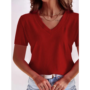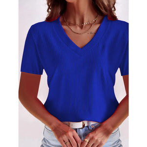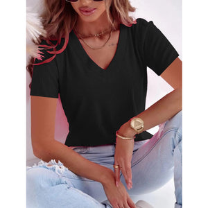 Full Size Solid V-Neck Short Sleeve T-Shirt Plus Size