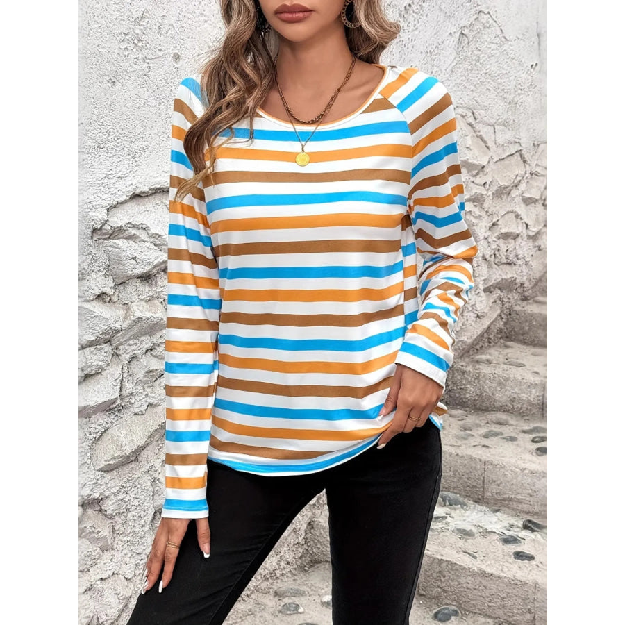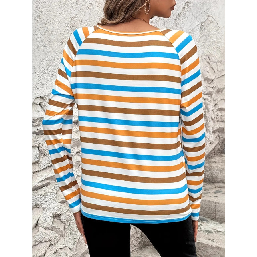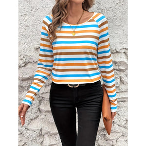Full Size Striped Long Sleeve Casual Top Plus Size