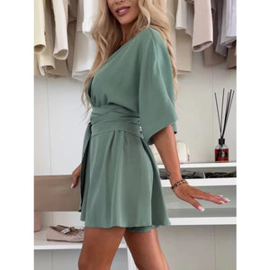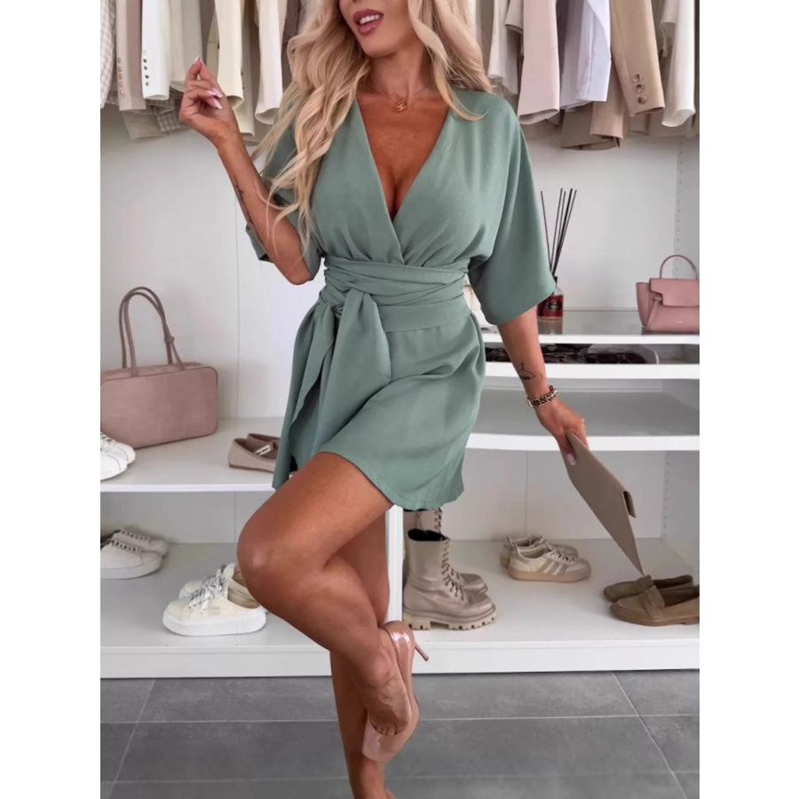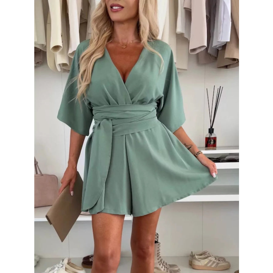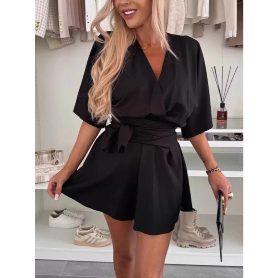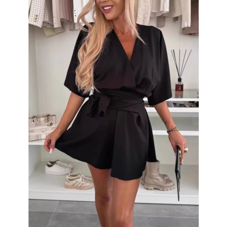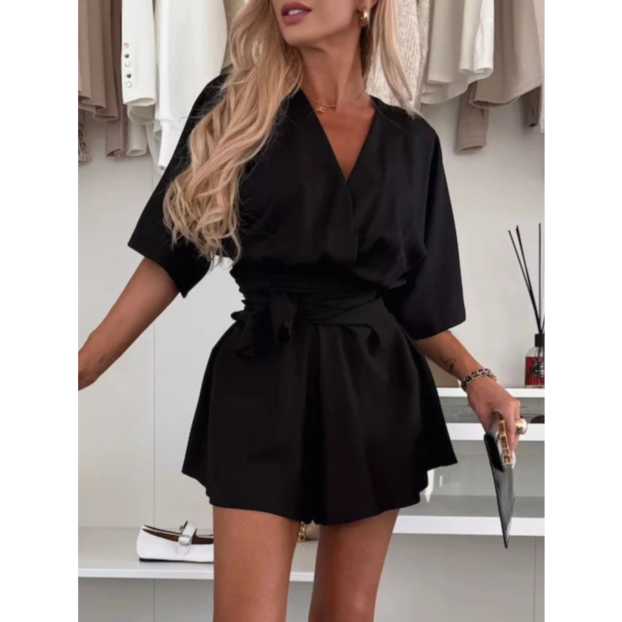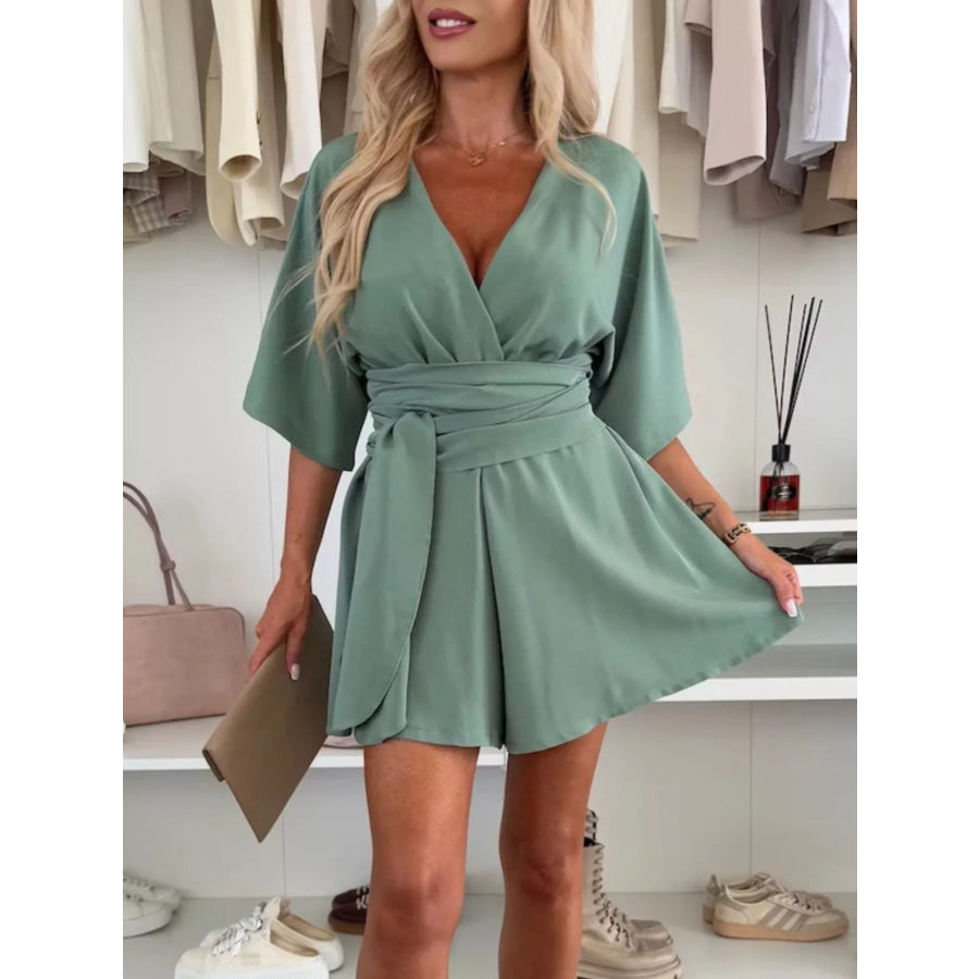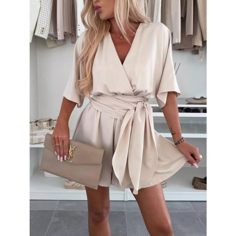 Full Size Surplice Tie Waist Romper Plus Size