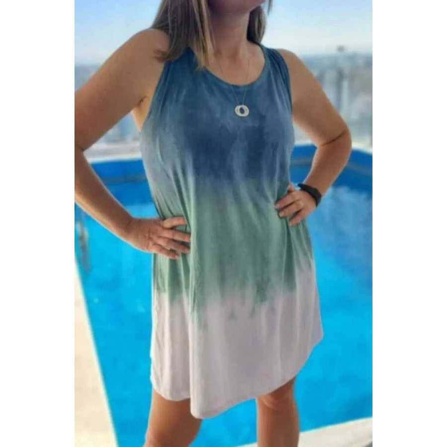 Full Size Tie-Dye Sleeveless Mini Tank Dress Plus Size