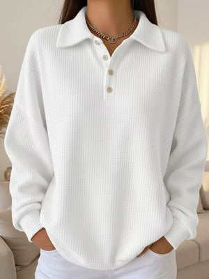 Full Size Waffle Knit Button Detail Sweatshirt Plus Size