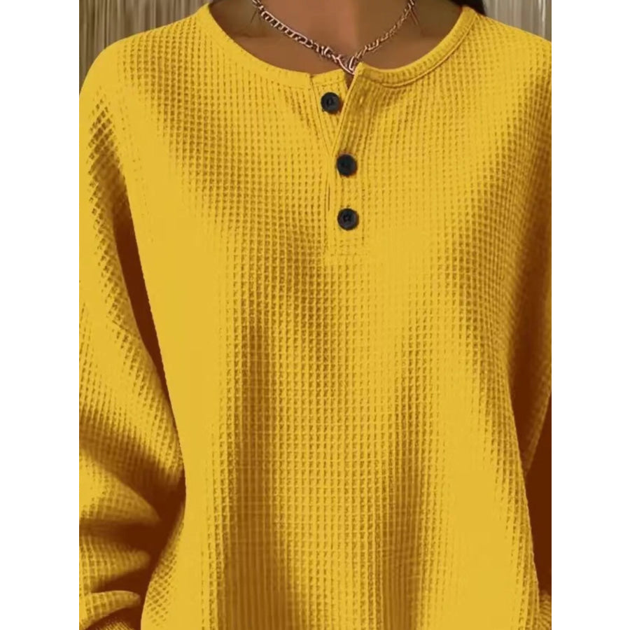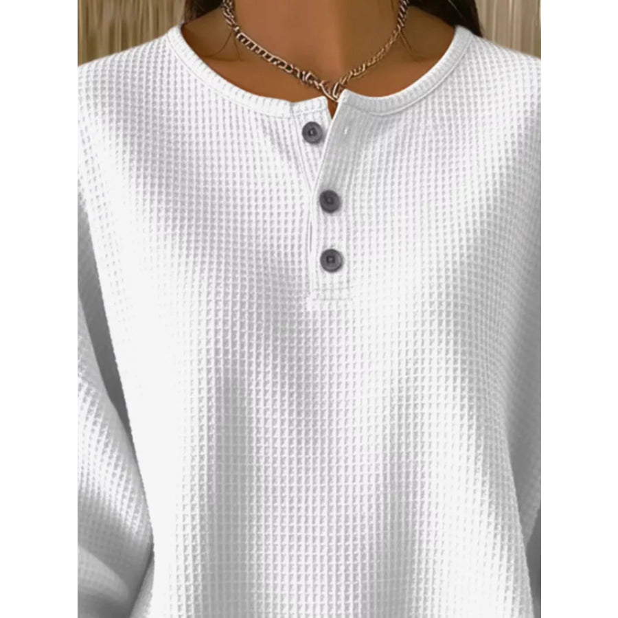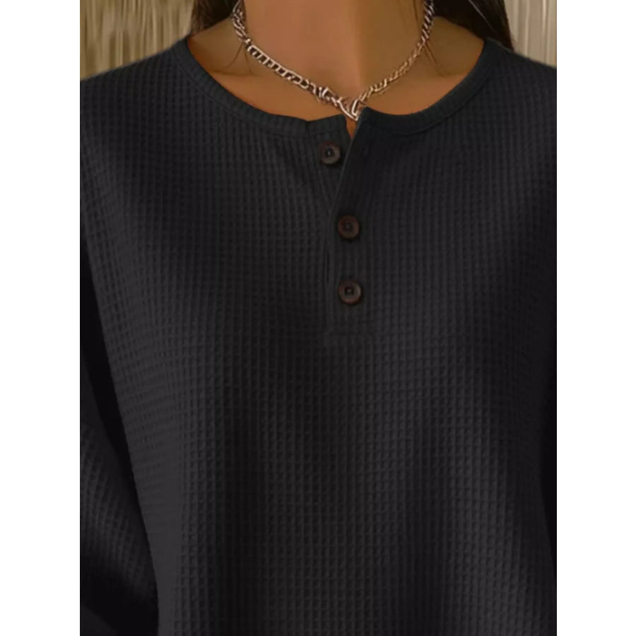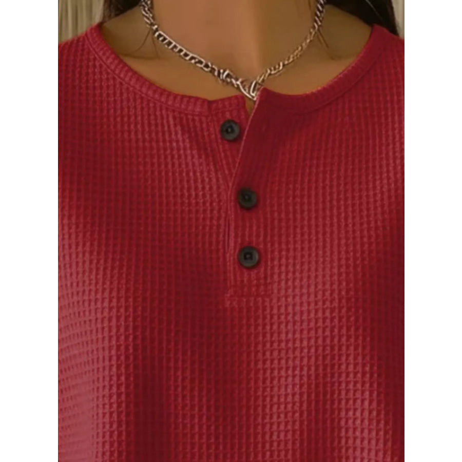 Full Size Waffle Knit Button Detail Top Plus Size