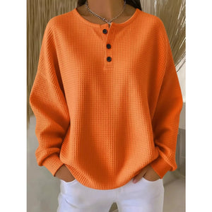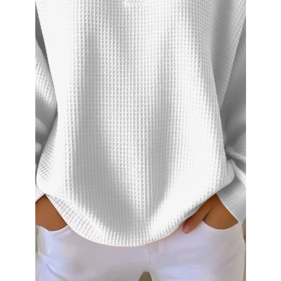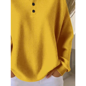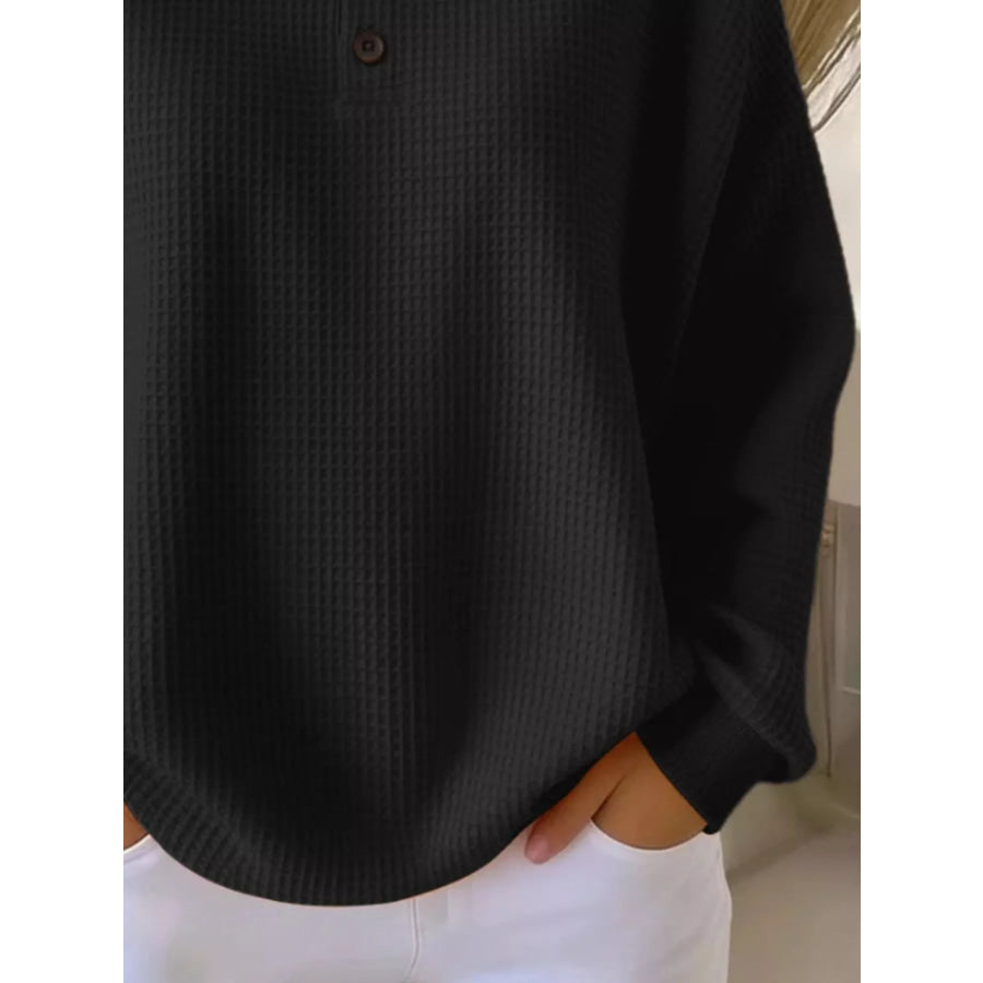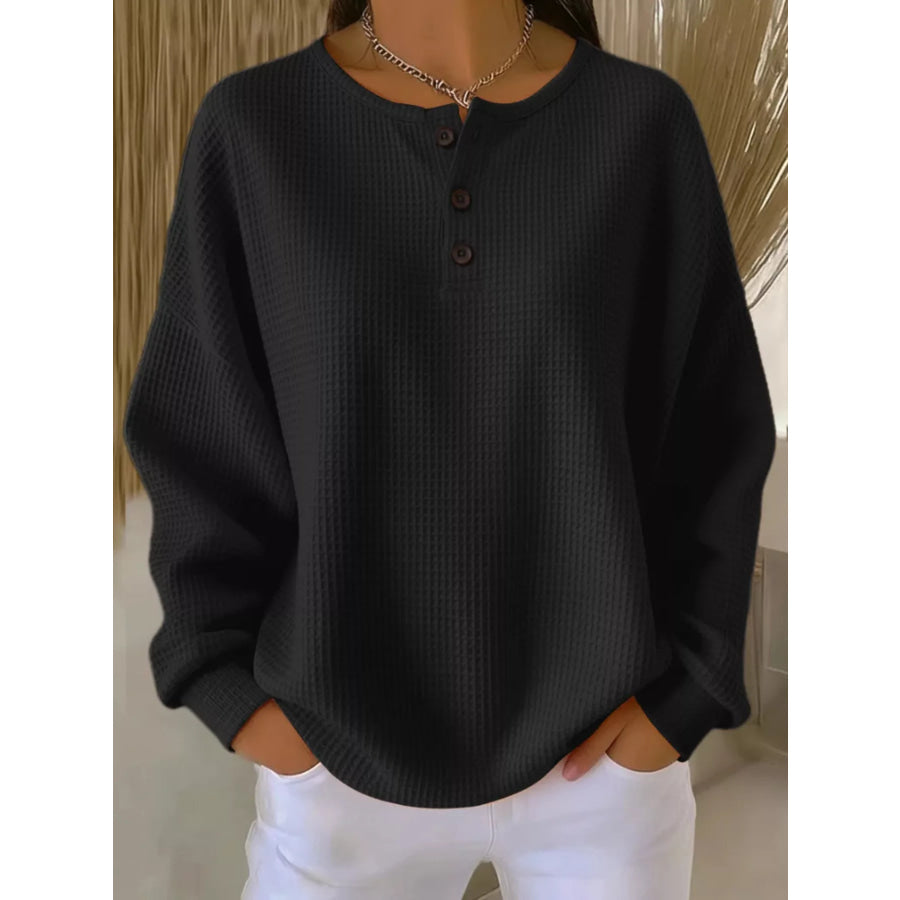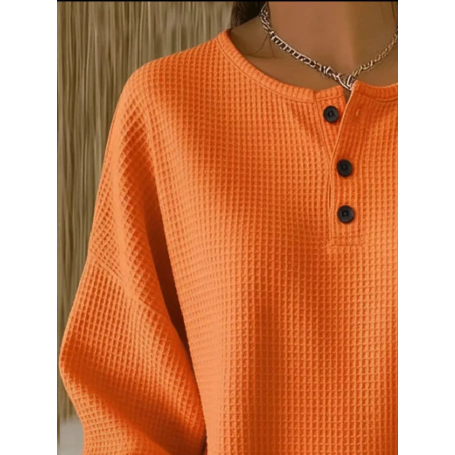 Full Size Waffle Knit Button Detail Top Plus Size