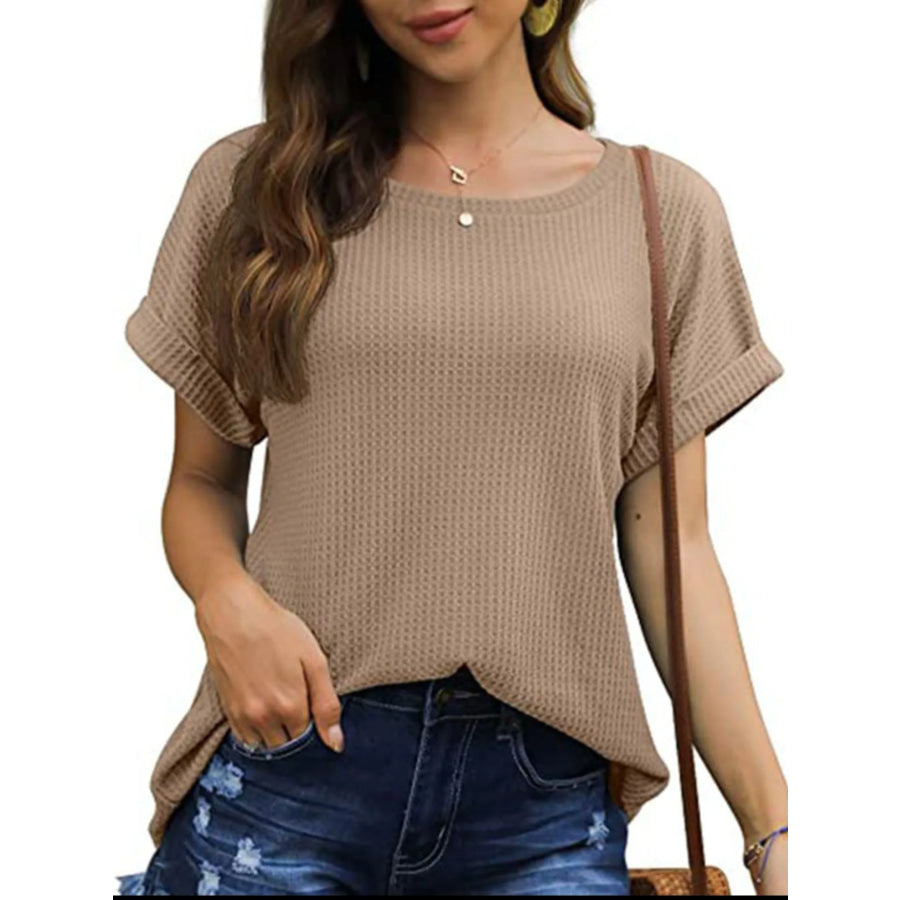 Full Size Waffle Knit Relaxed Fit T-Shirt Plus Size