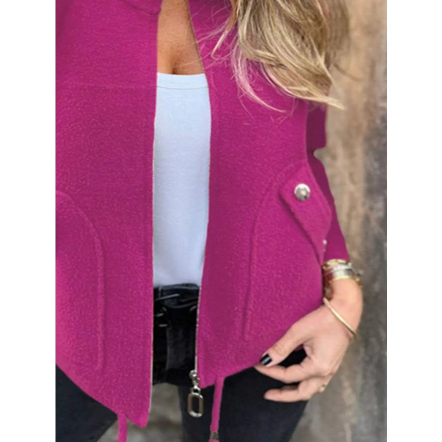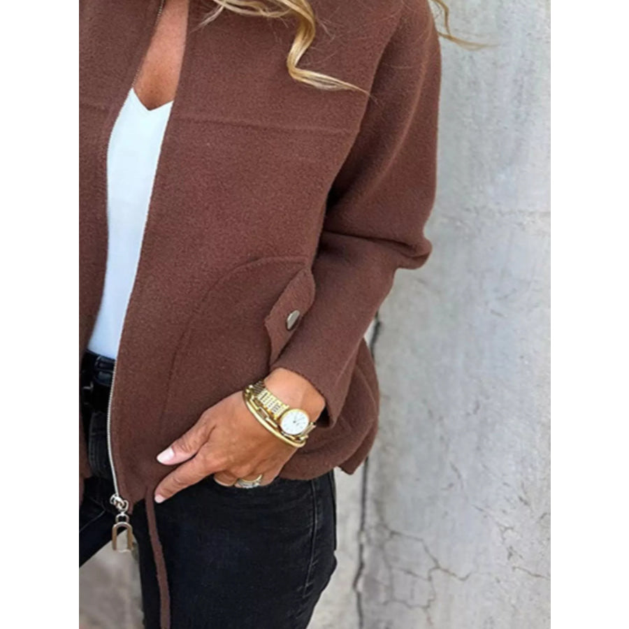 Full Size Zip-Up Long Sleeve Outerwear Plus Size