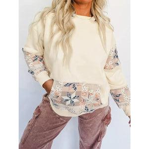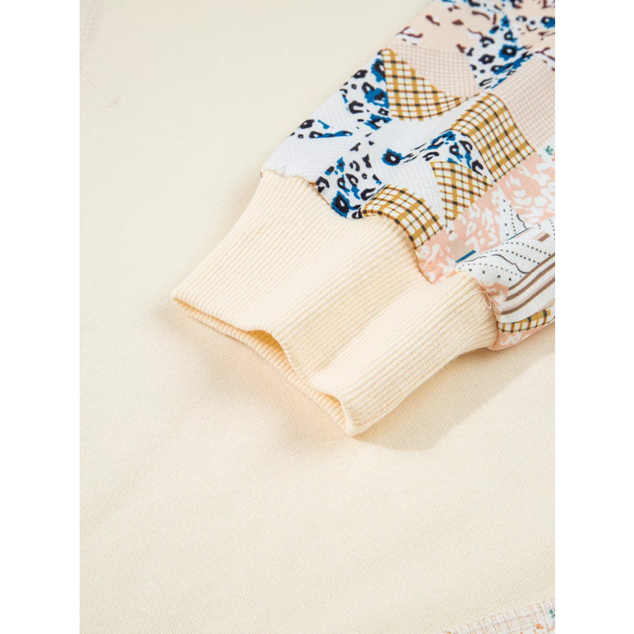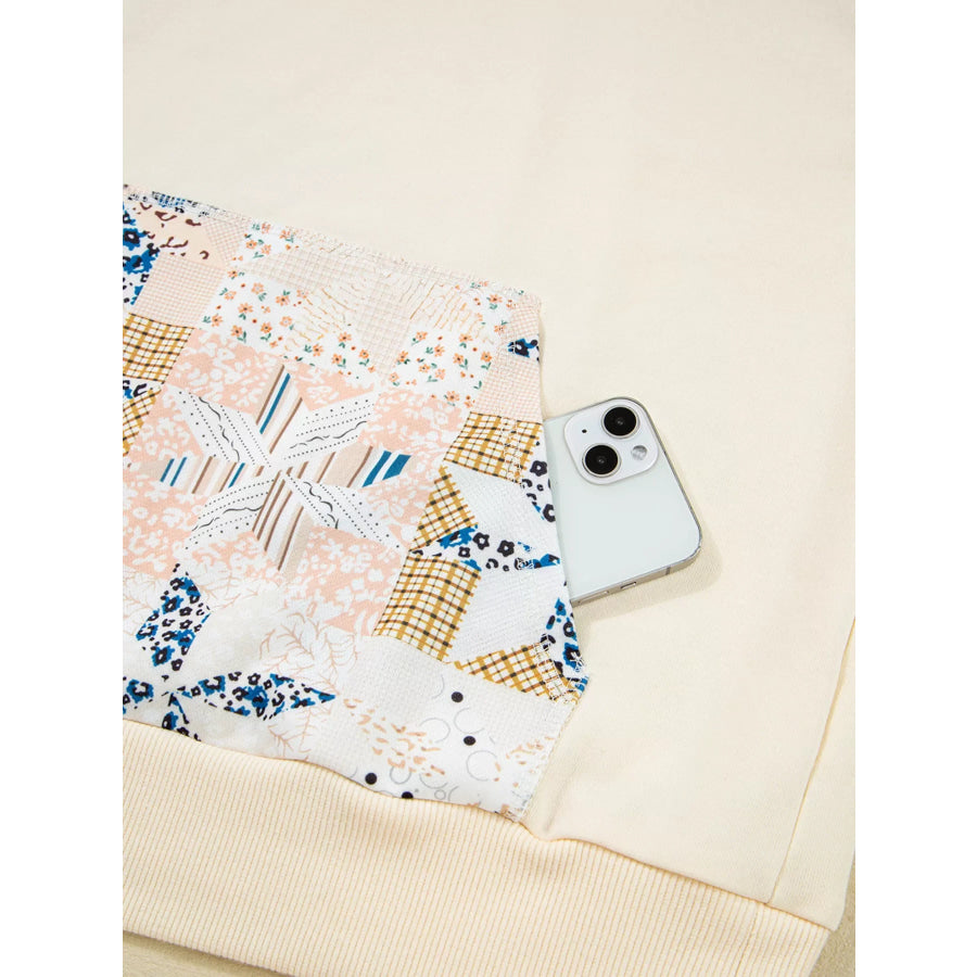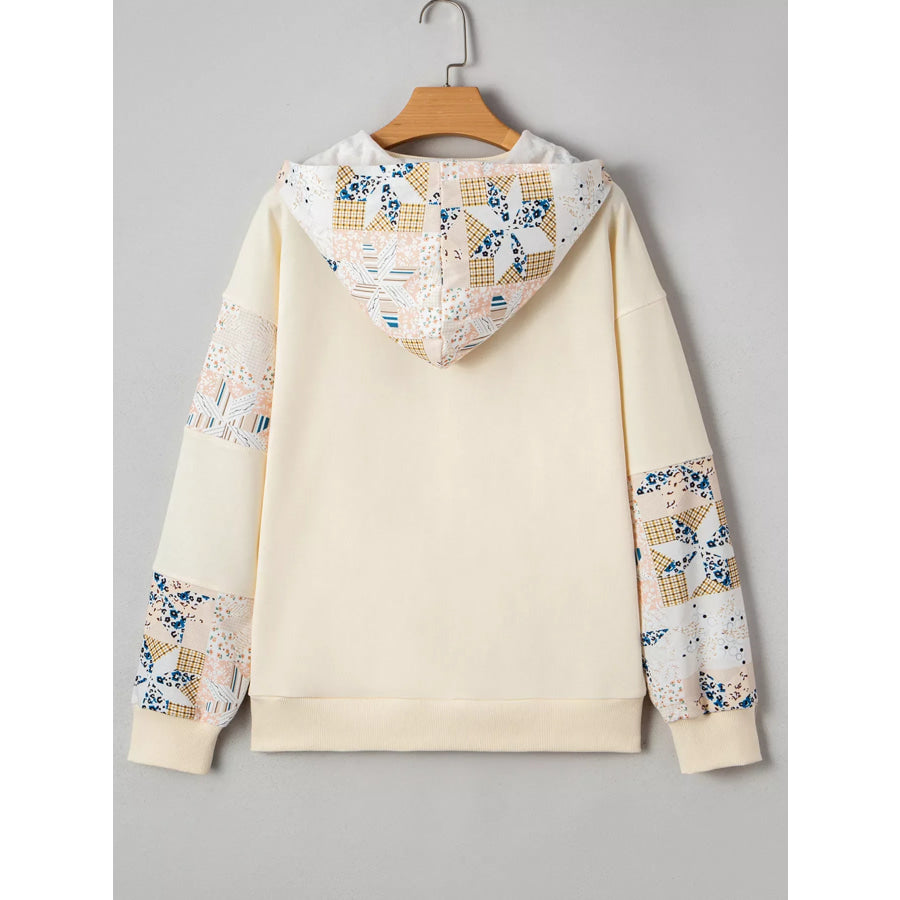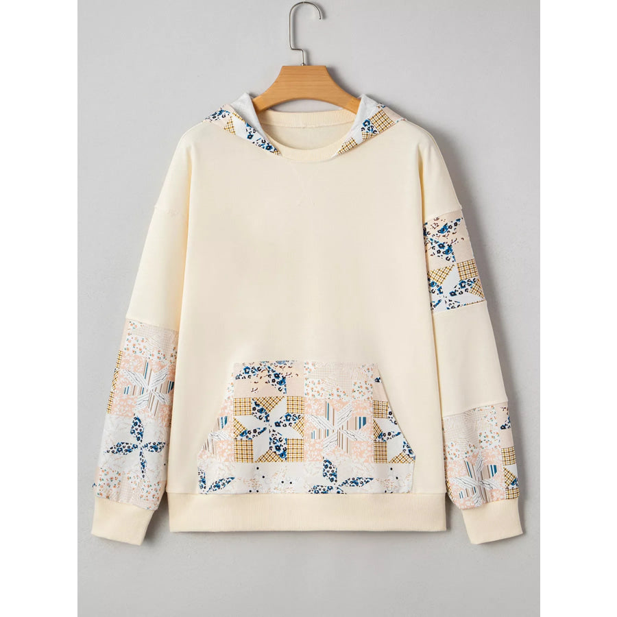 Geo Pattern Patchwork Hoodie with Kangaroo Pocket