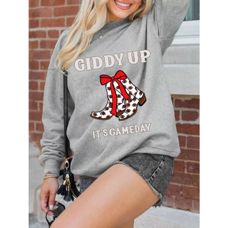 GIDDY UP ITS GAME DAY Cowgirl Boots Graphic Sweatshirt