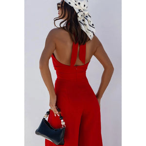 Halter Neck Wide Leg Jumpsuit with Keyhole Detail