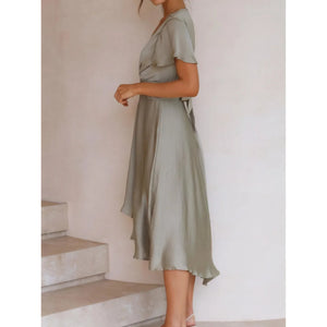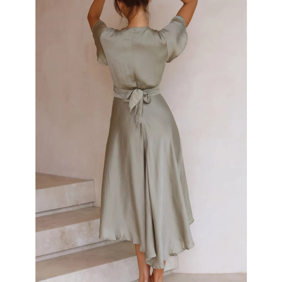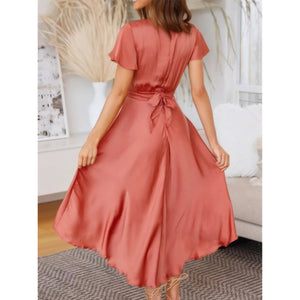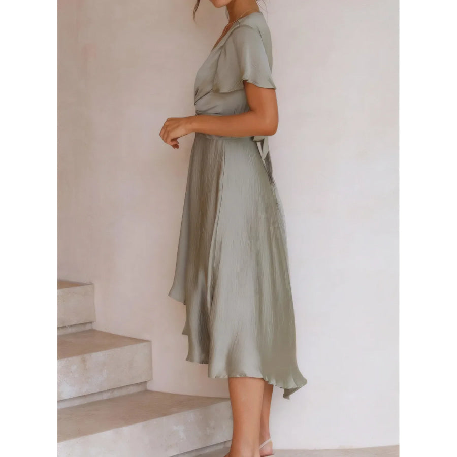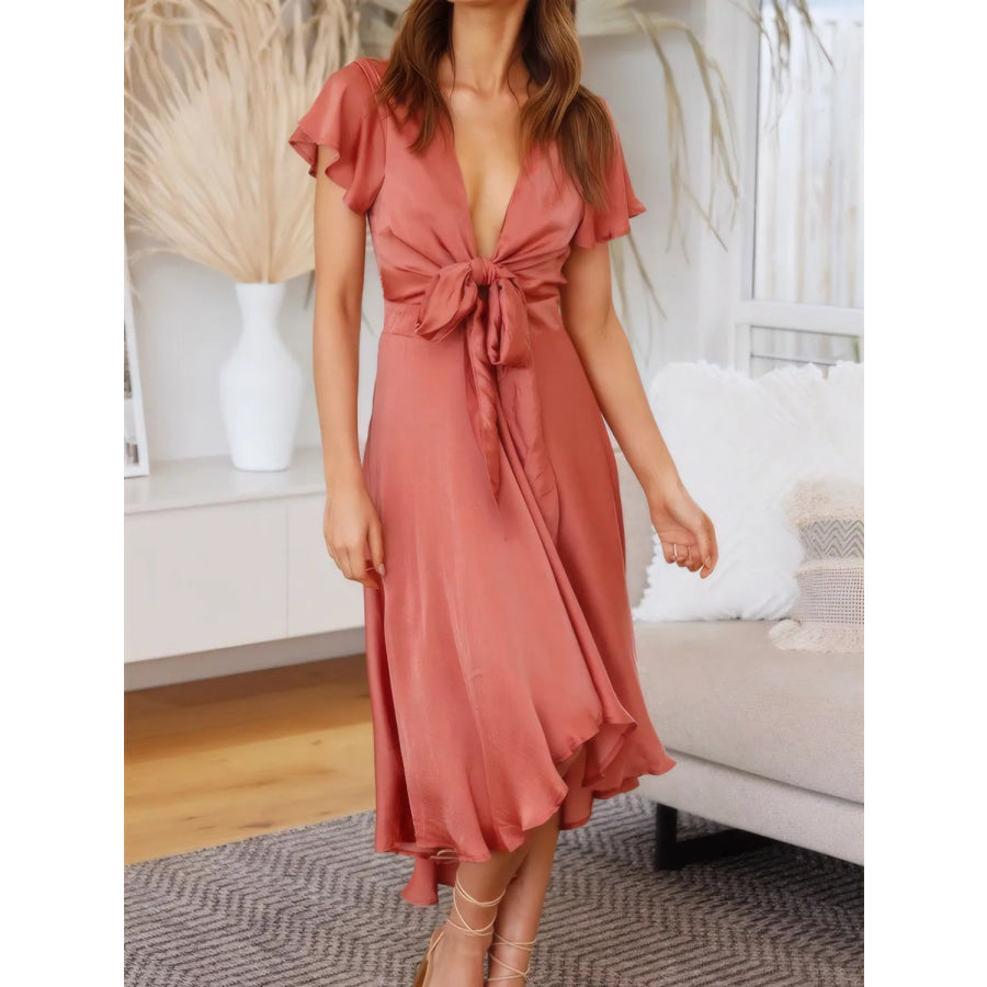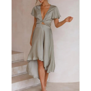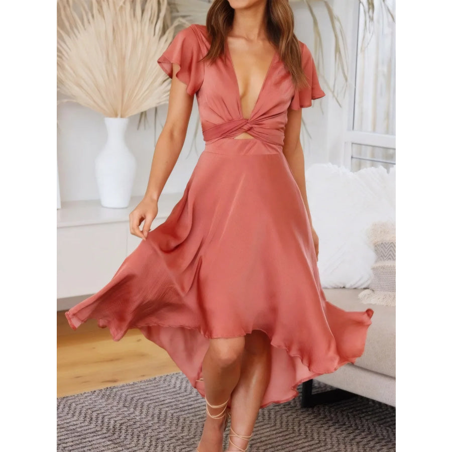High-Low Plunge Flutter Sleeve Dress