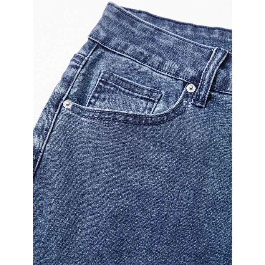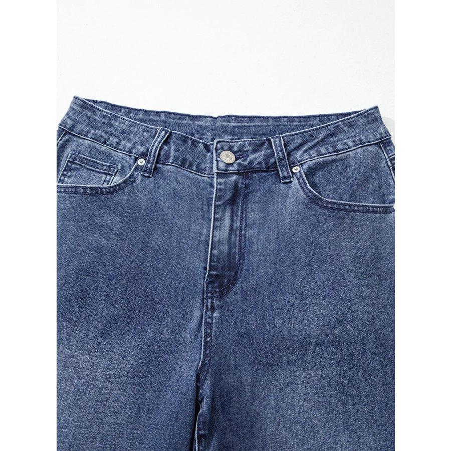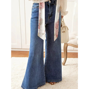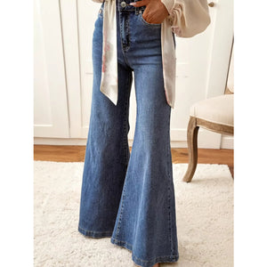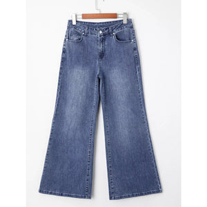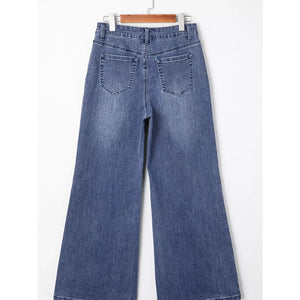 High Waist Button Zip Flare Leg Jeans