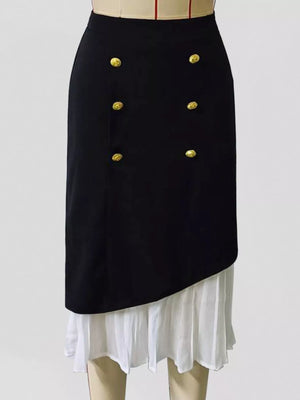 High-Waisted Button Decor Pleated Hem Skirt