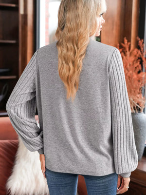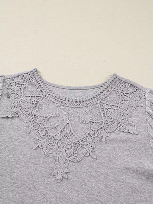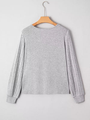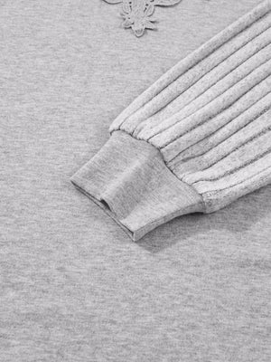 Hollowed Lace Ribbed Knit Long Sleeve Patchwork Top