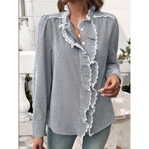 Lace Detail Ruffled Round Neck Long Sleeve Shirt