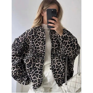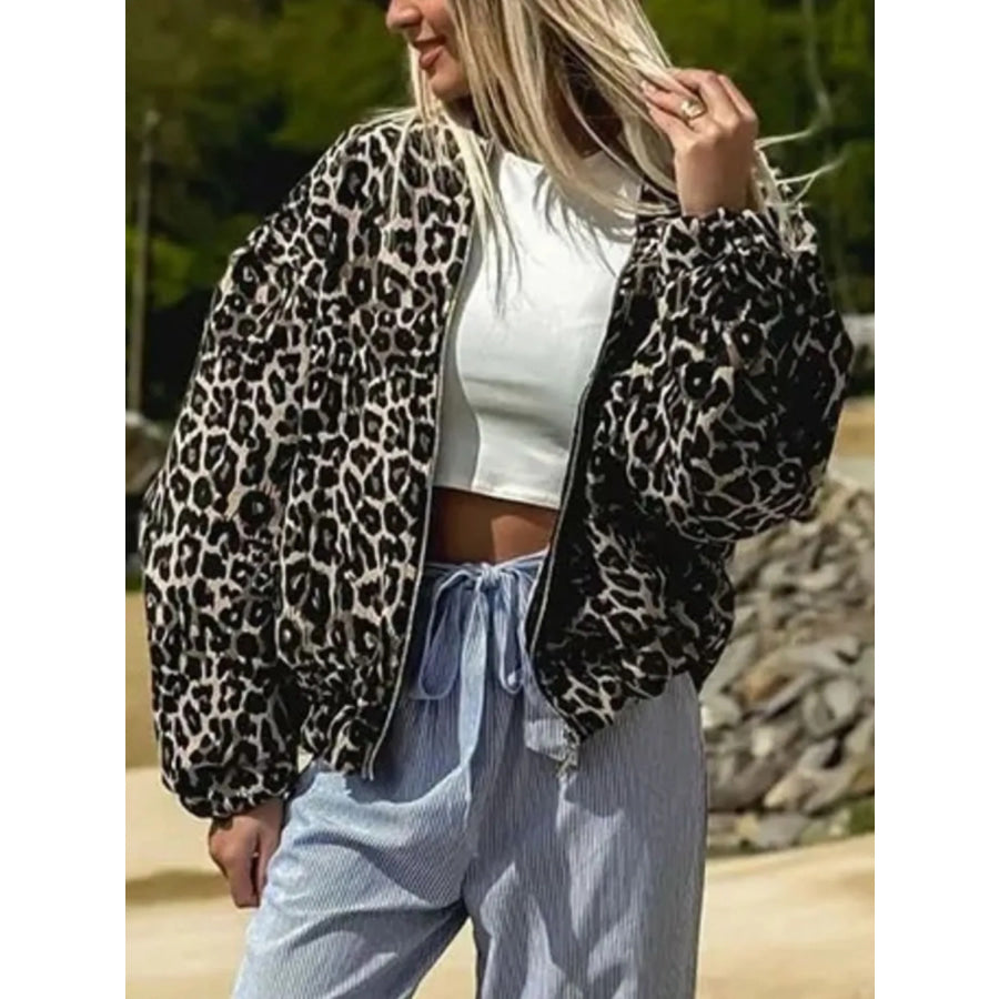 Leopard Print Oversized Bomber Jacket