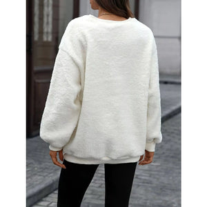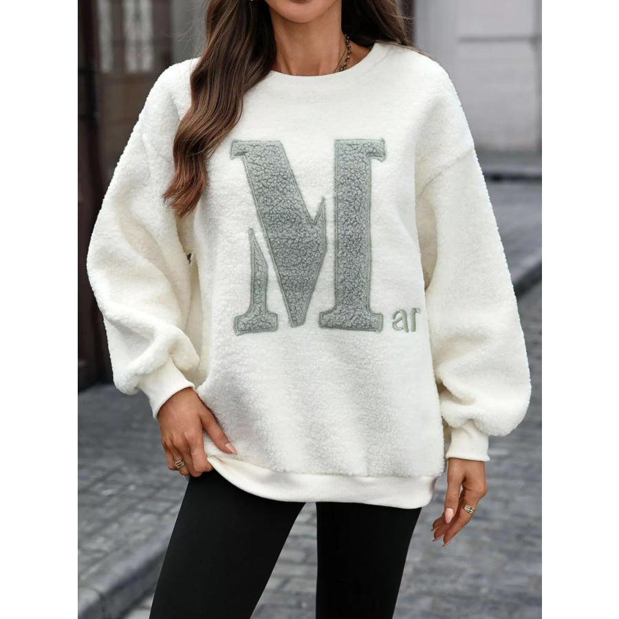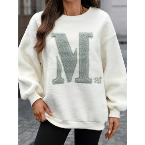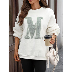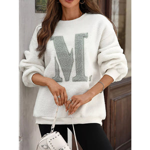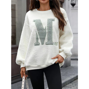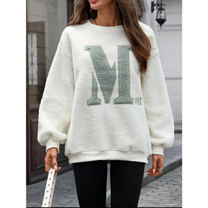 Letter Round Neck Fleece Sweatshirt