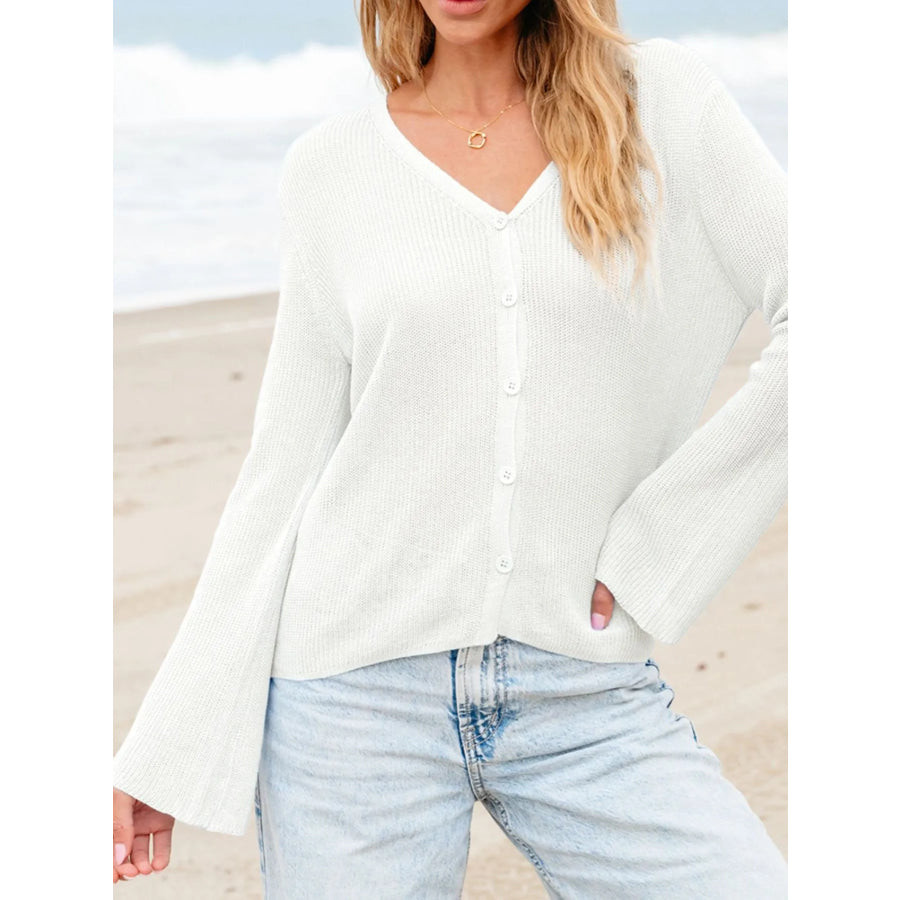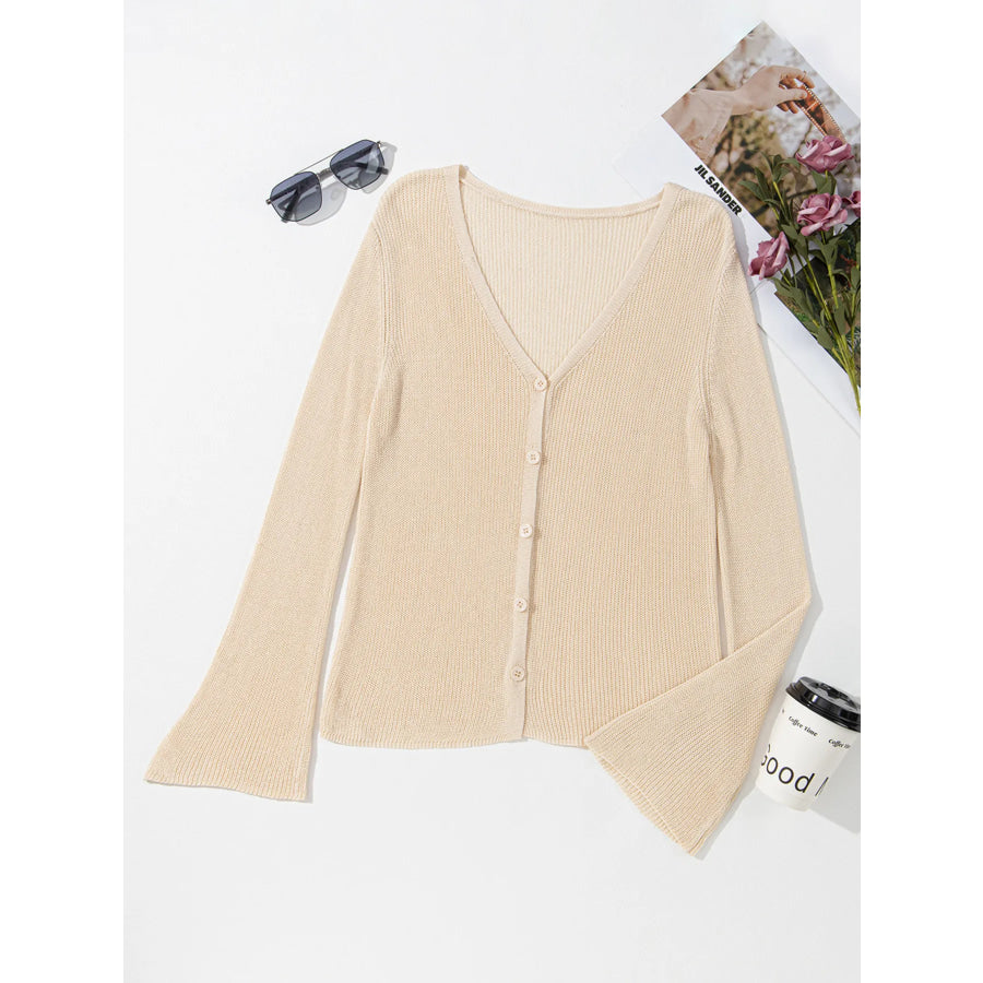 Lightweight V Neck Button Front Bell Sleeve Cardigan