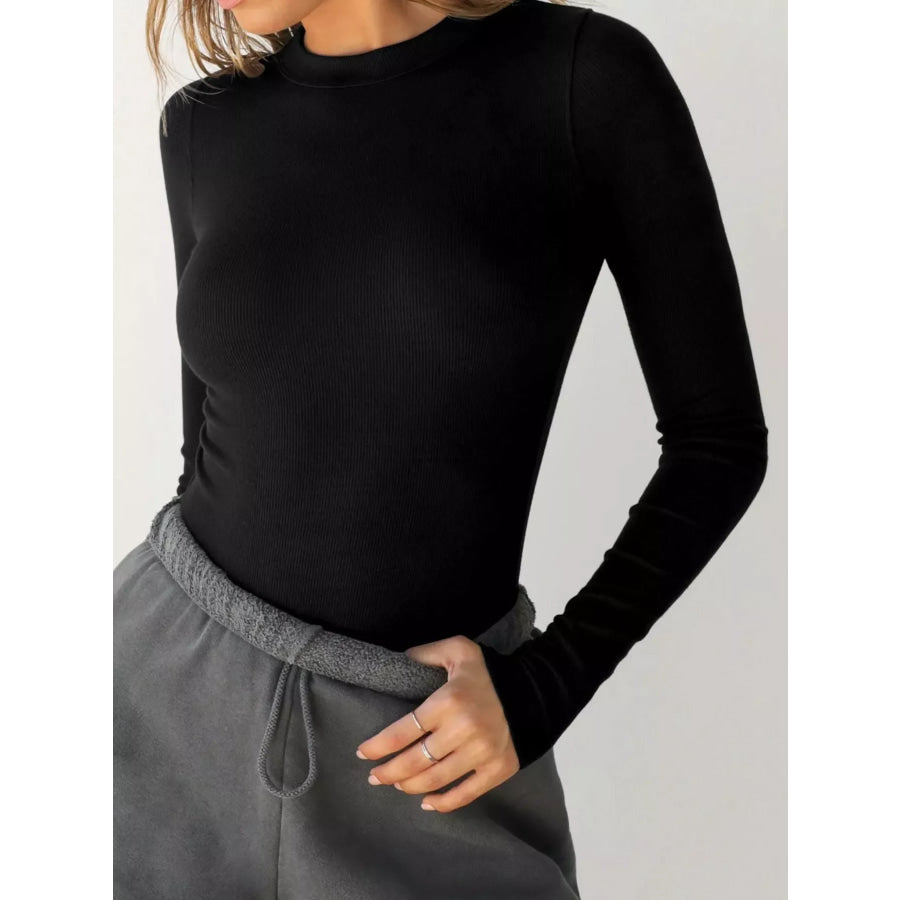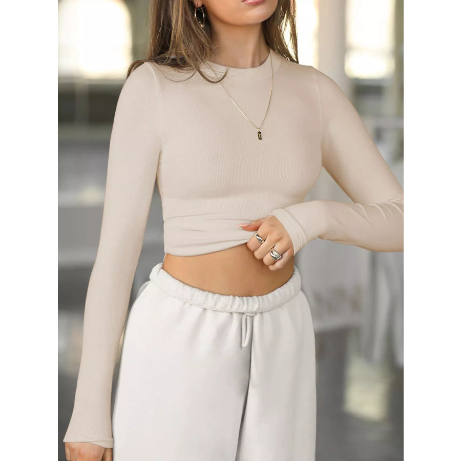 Long Sleeve Crop T-Shirt with Ribbed Texture