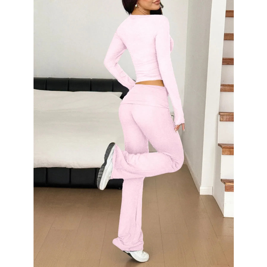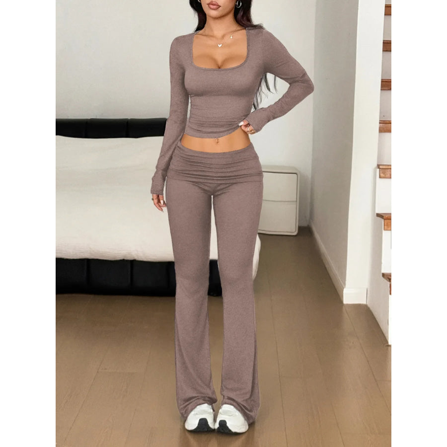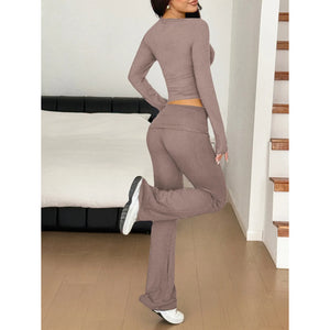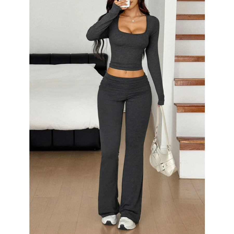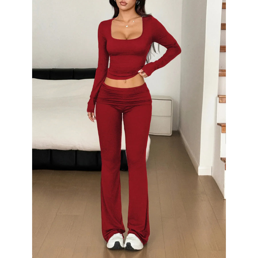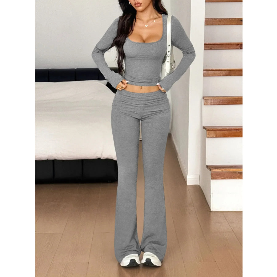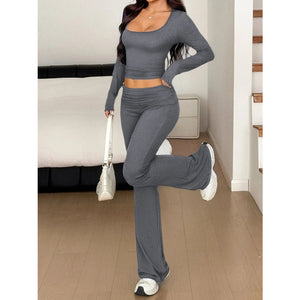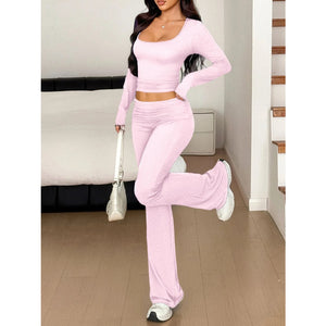 Long Sleeve Crop Top and Bootcut Pants Set