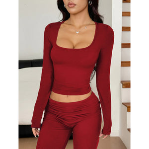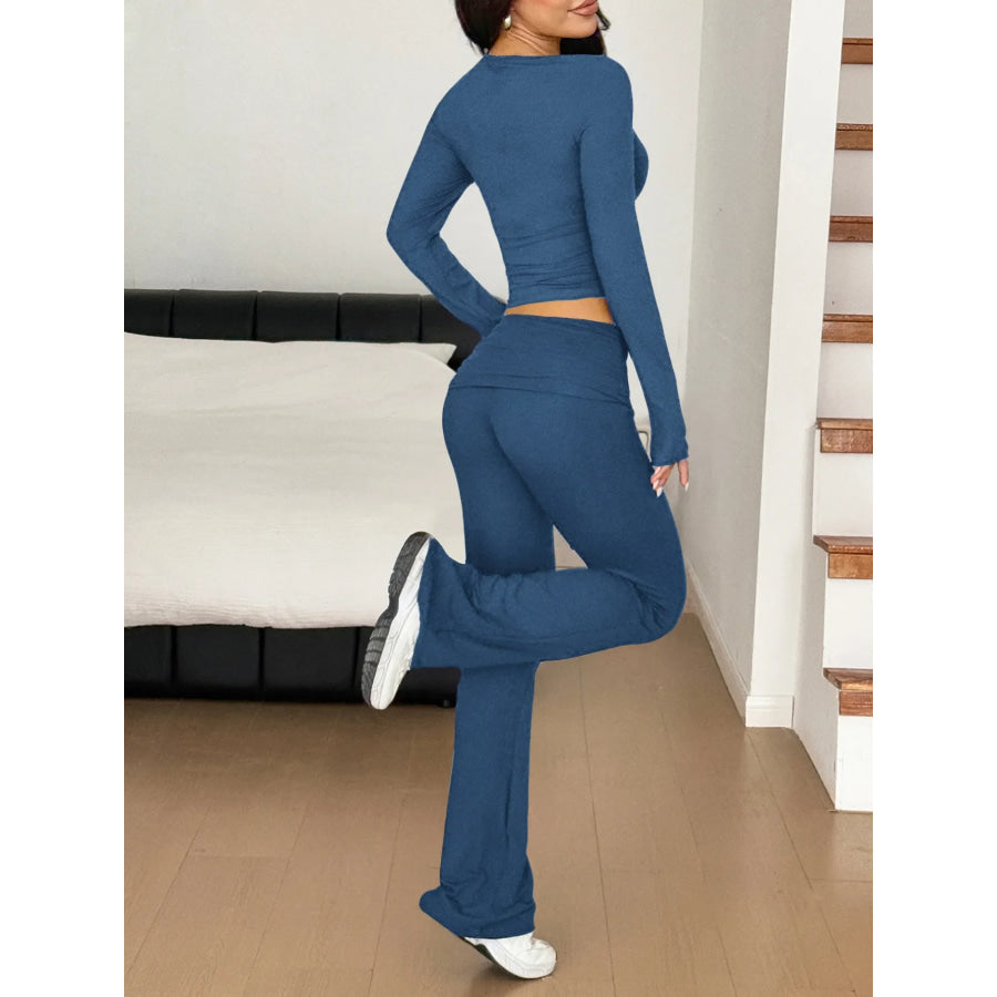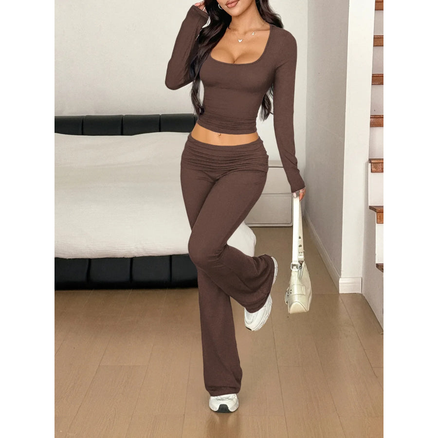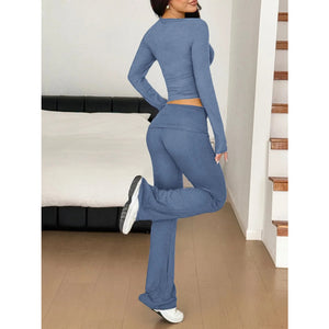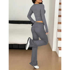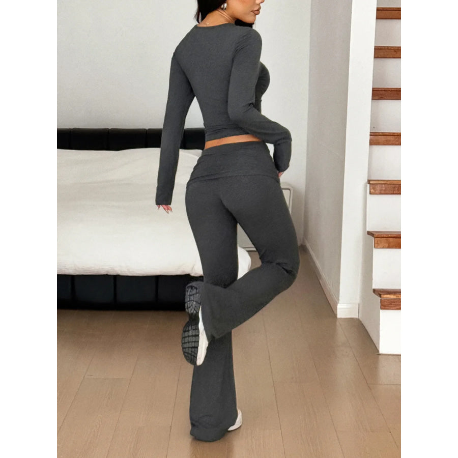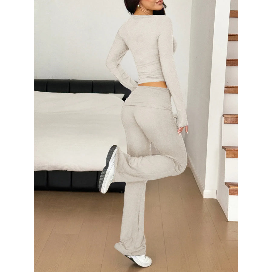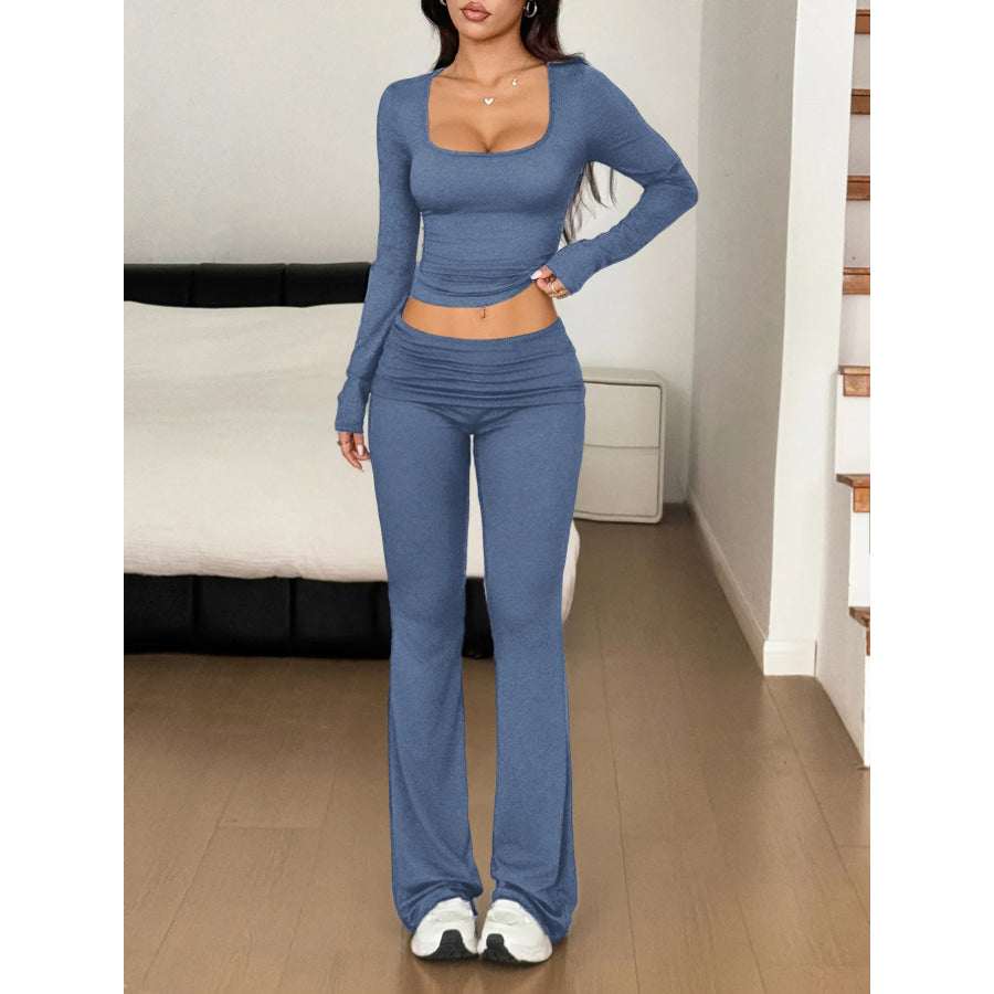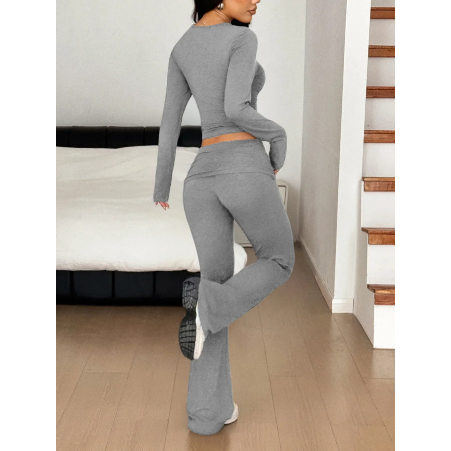 Long Sleeve Crop Top and Bootcut Pants Set
