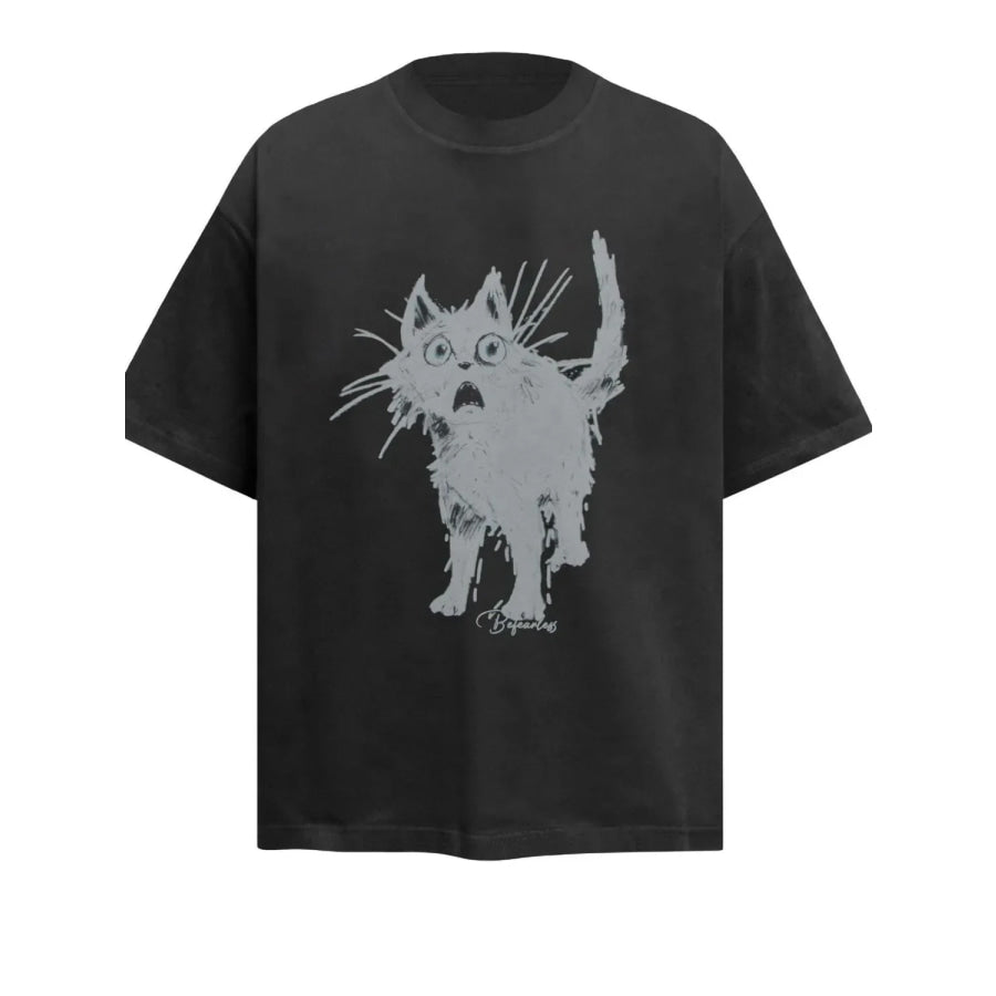 Men's Cat Round Neck Short Sleeve T-Shirt
