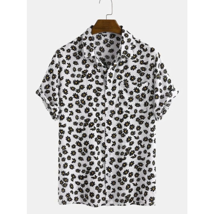 Men's Full Size Daisy Print Button Up Shirt Plus Size