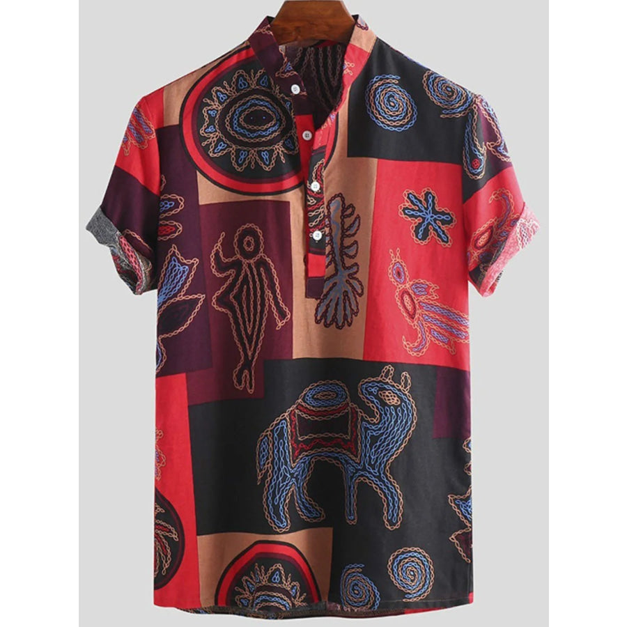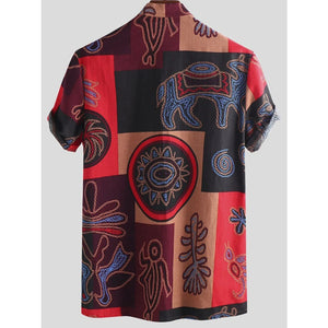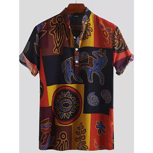 Men's Full Size Ethnic Print Short Sleeve Shirt Plus Size