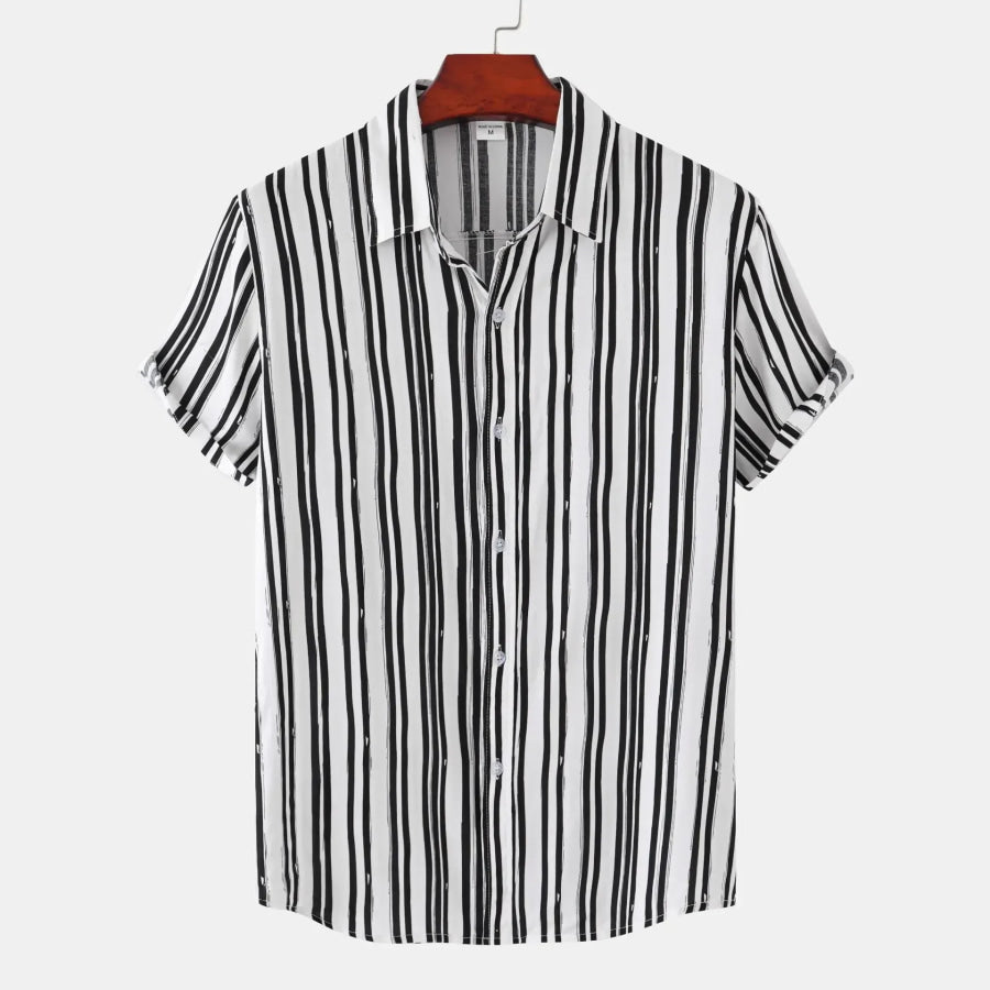 Men's Plus Size Striped Short Sleeve Button-Down Shirt