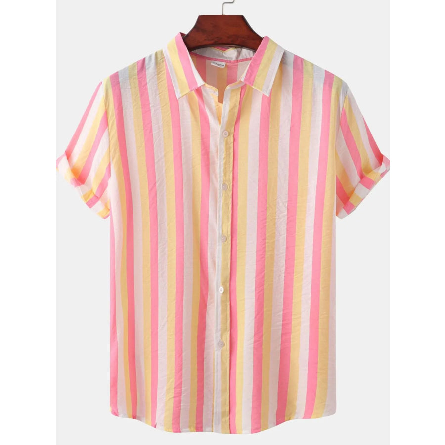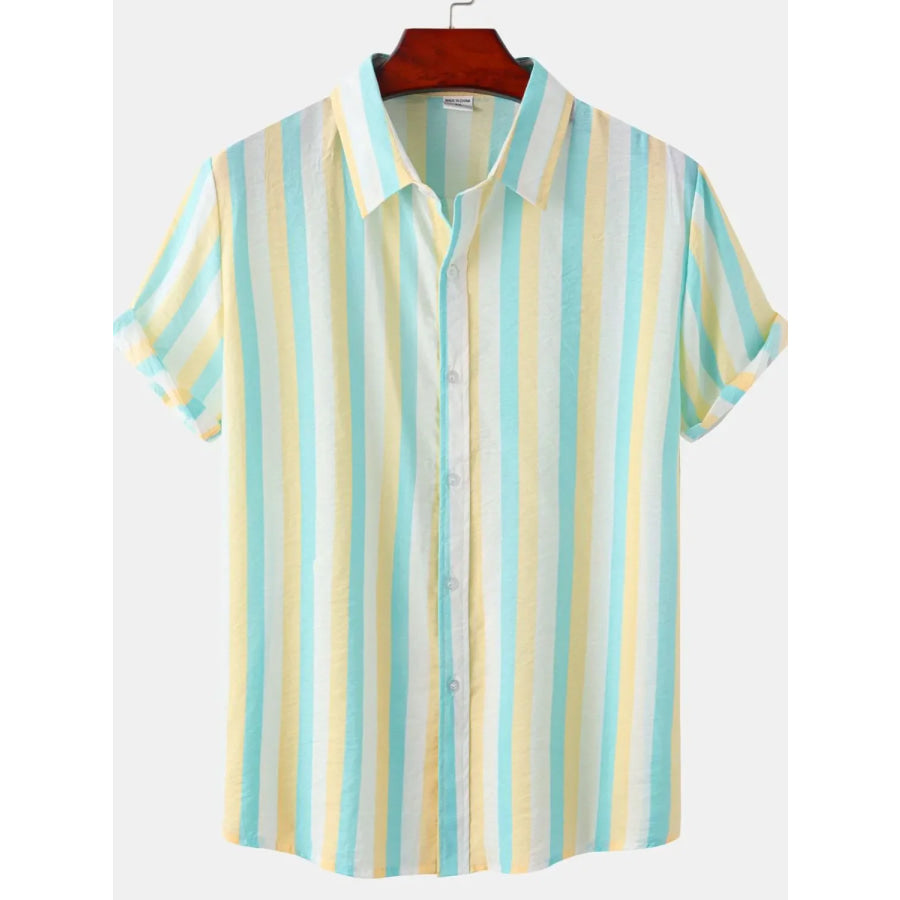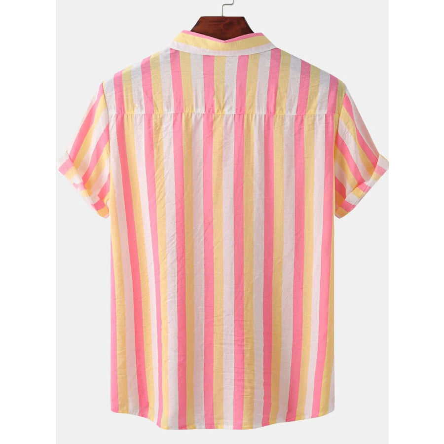 Men's Plus Size Striped Short Sleeve Button-Up Shirt