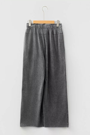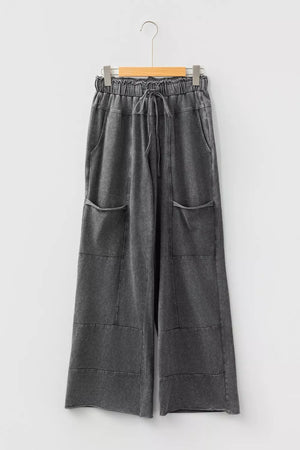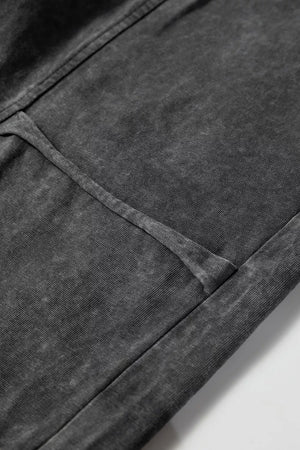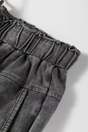 Mineral Wash Lace-up High Waist Raw Hem Patched Pocket Pants