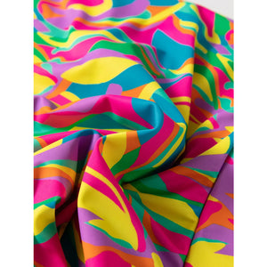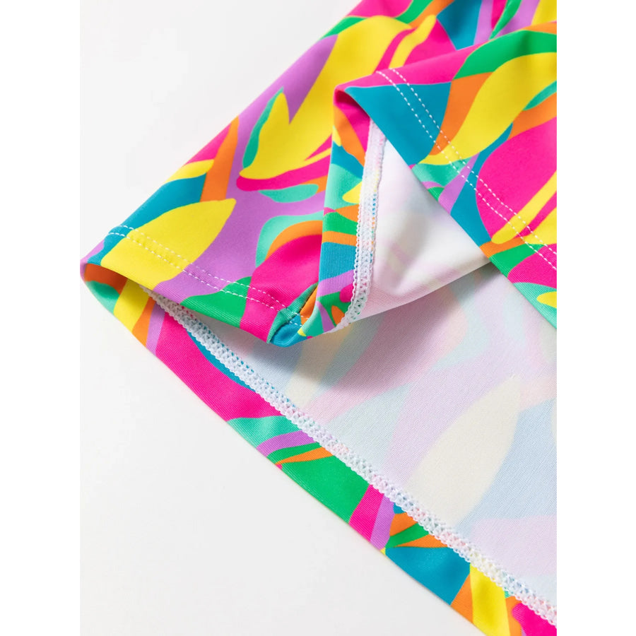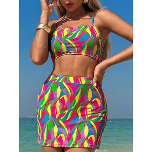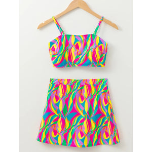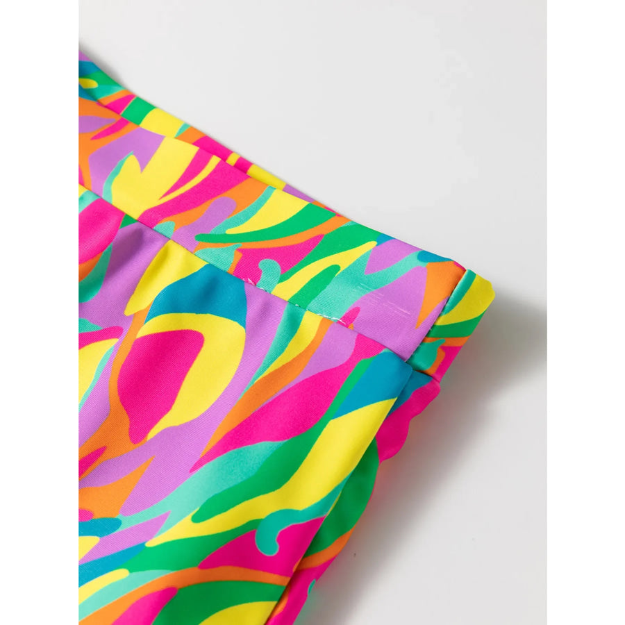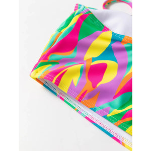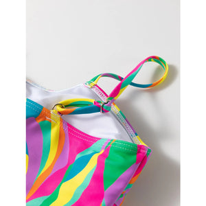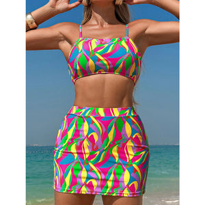 Multicolour Abstract Print Textured Spaghetti Strap High Waist Bikini Set