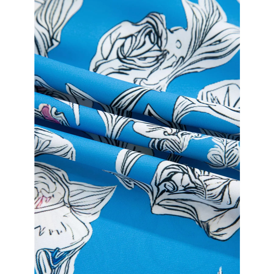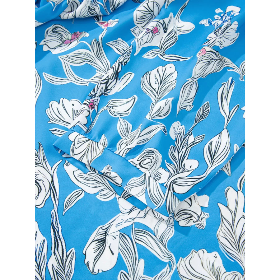 Notched Floral Print 3/4 Puff Sleeve Blouse