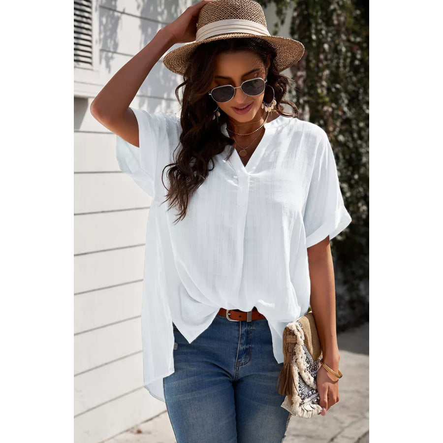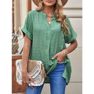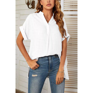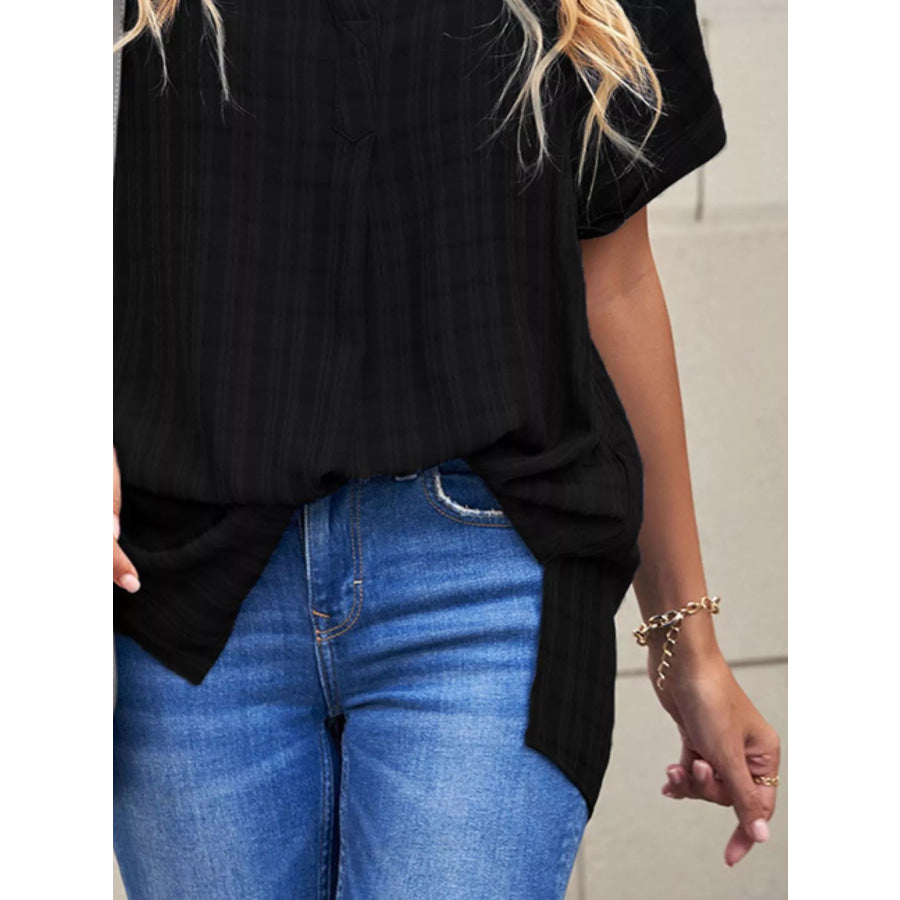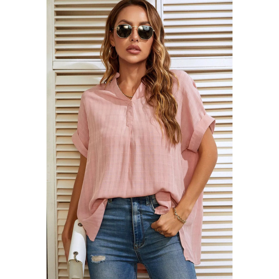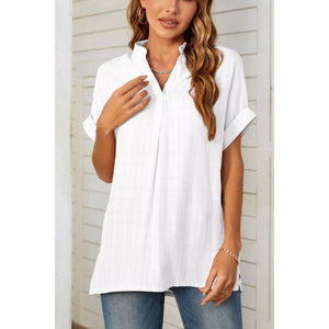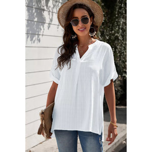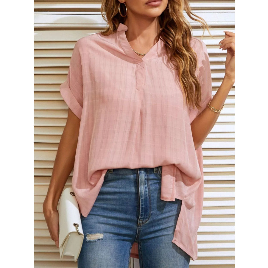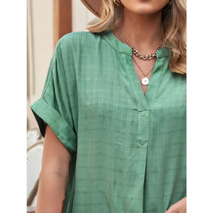Notched Short Sleeve Blouse