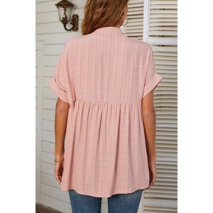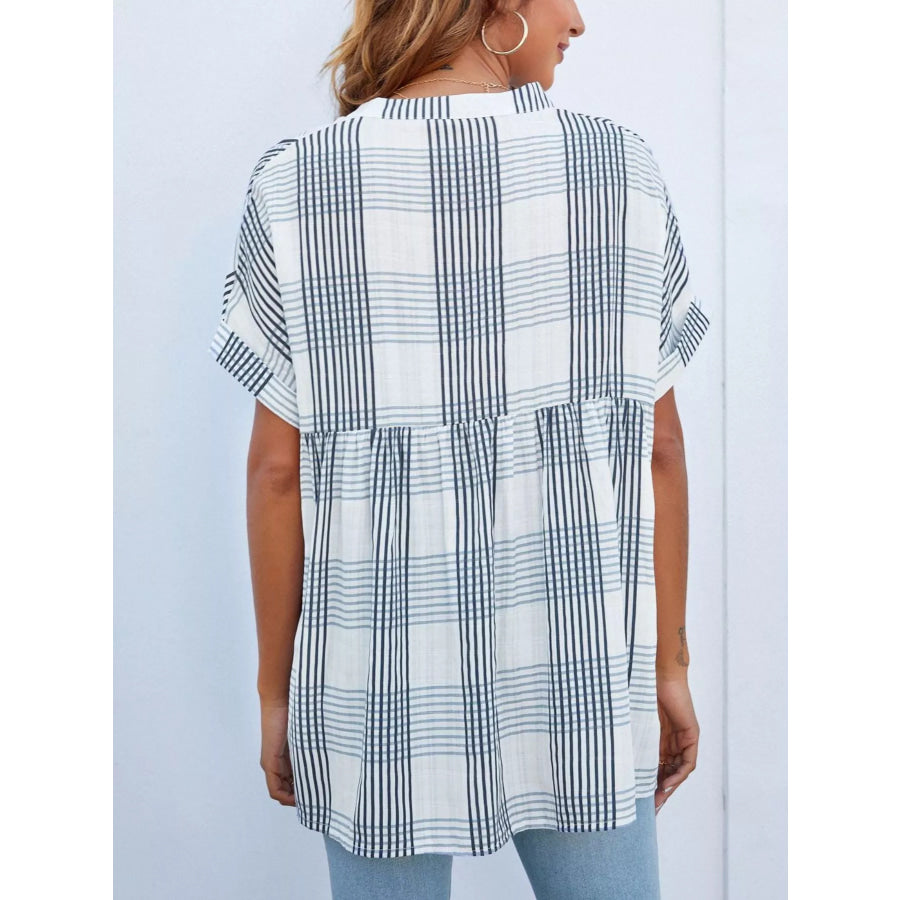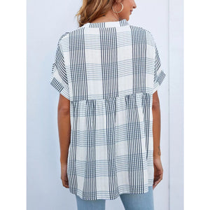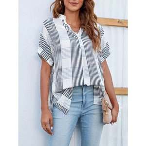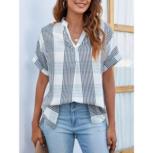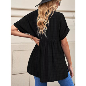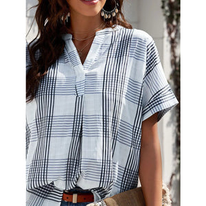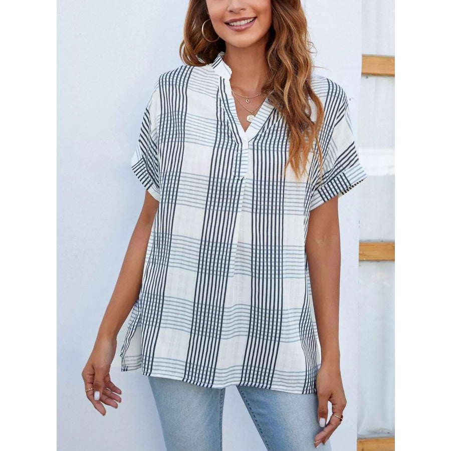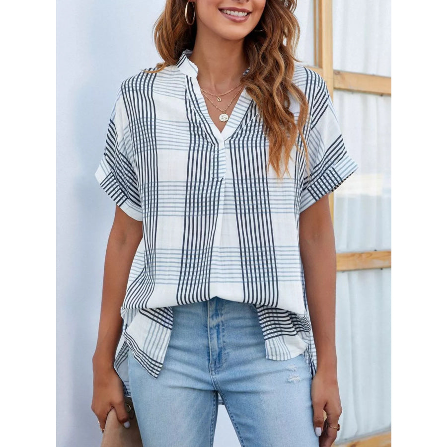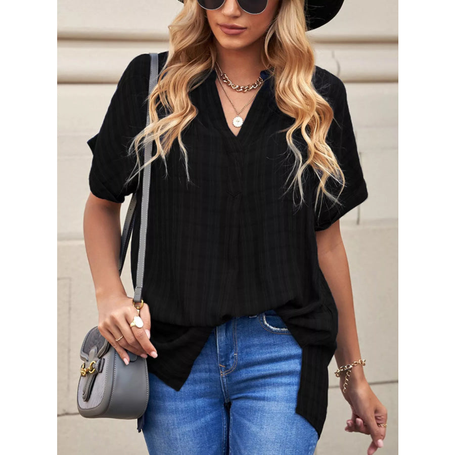 Notched Short Sleeve Blouse