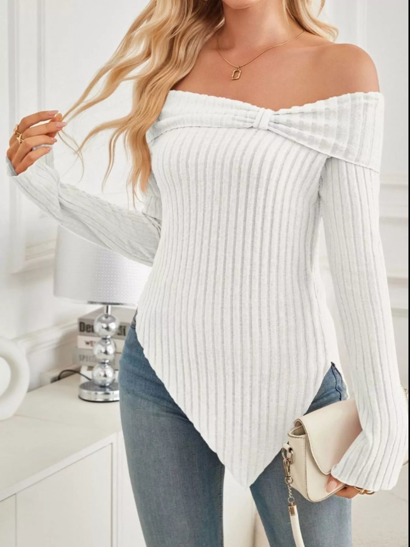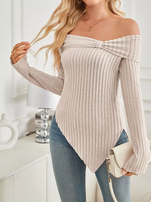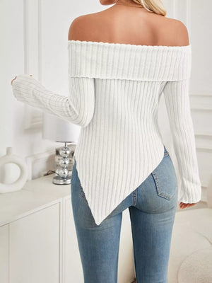 Off-Shoulder Ribbed Knit T-Shirt